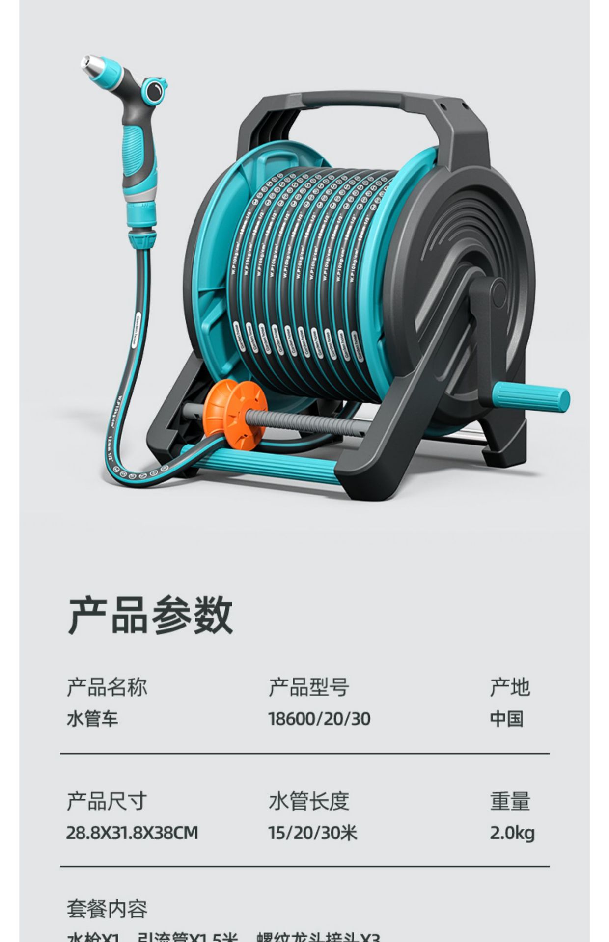 • 【自动排管】金属高压长枪+滑轮20米水管车套装