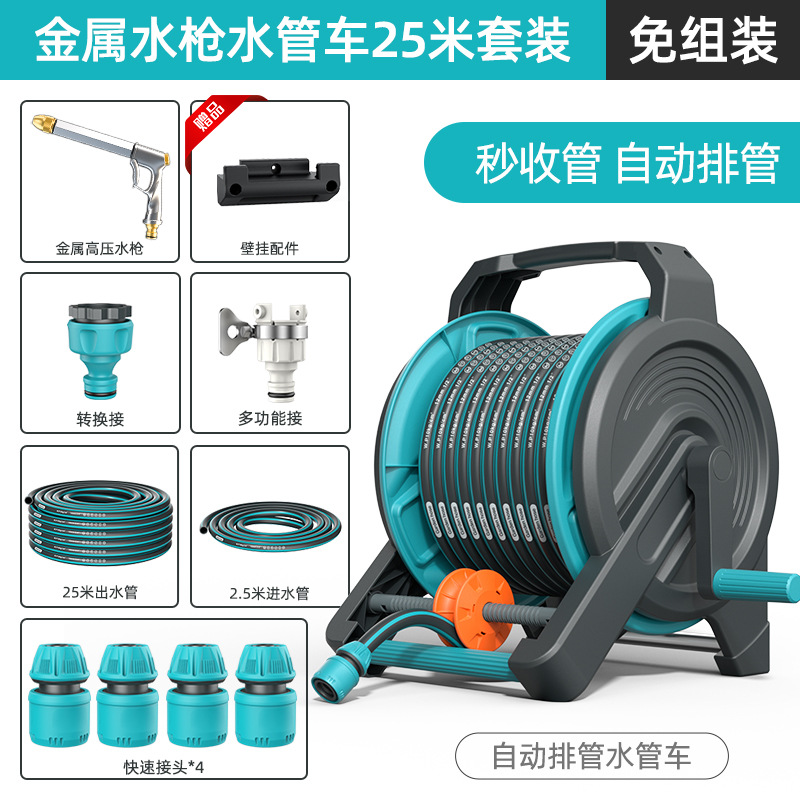 • 【自动排管】金属高压长枪+滑轮25米水管车套装