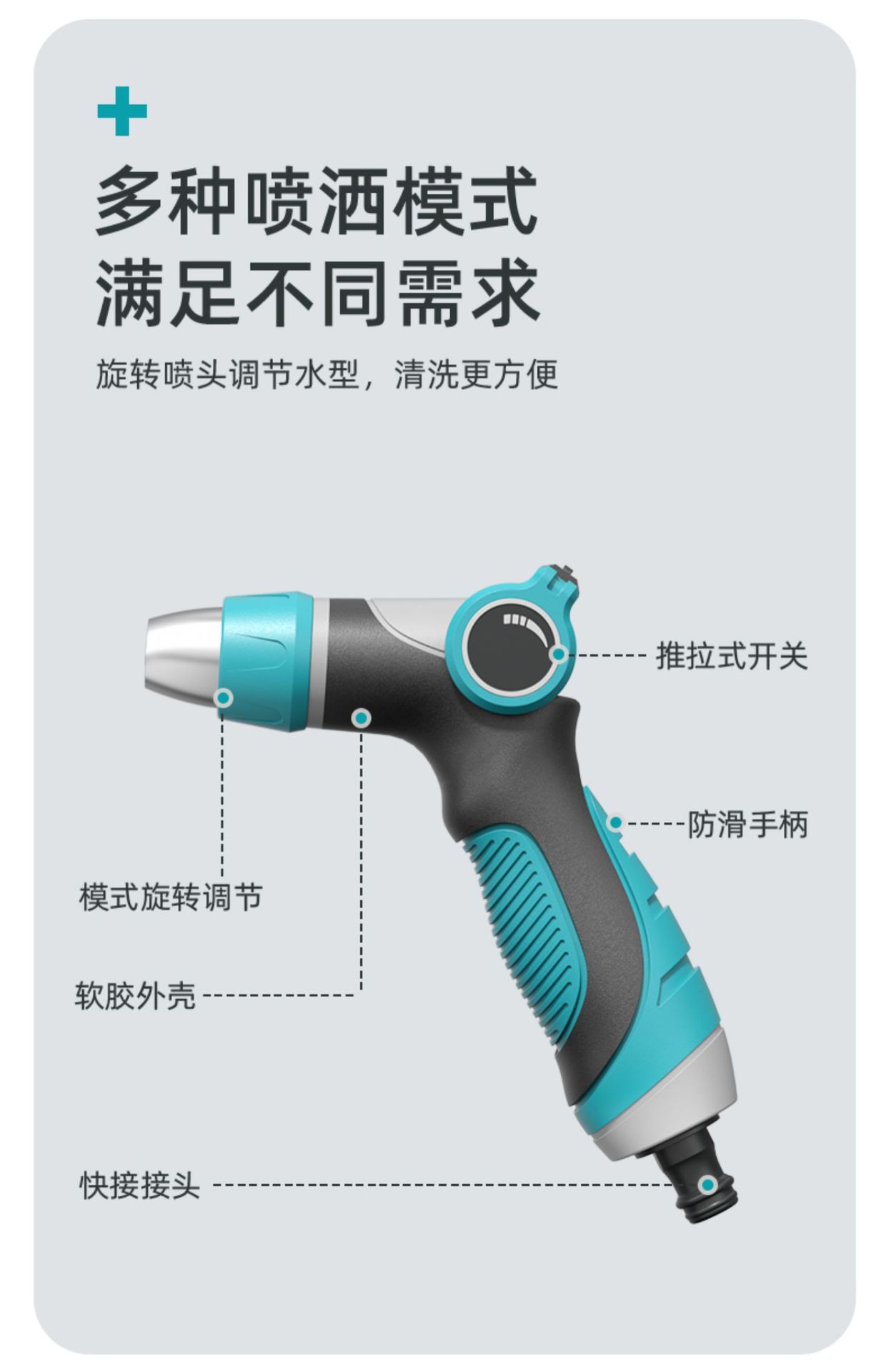 • 金属高压长枪+蓝色10米水管+泡沫壶【免组装】