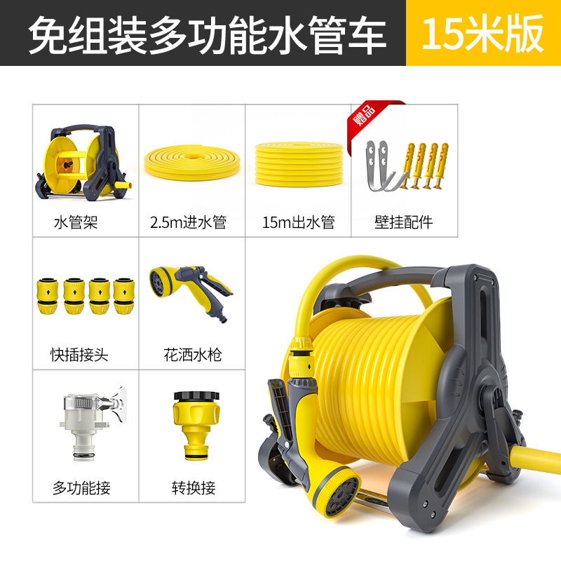 • 花洒黄色水枪+15米水管车套装【免组装】