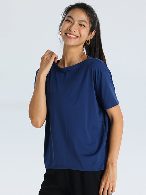 여름 여성을 위한 새로운 원라인 칼라 요가 반팔 루즈 캐주얼 아이스 느낌 속건성 통기성 스포츠 피트니스 블라우스 티셔츠