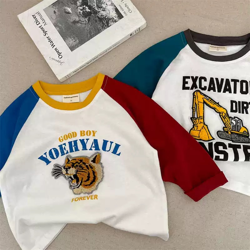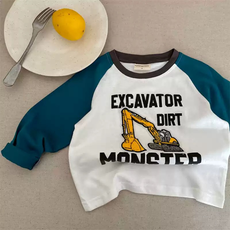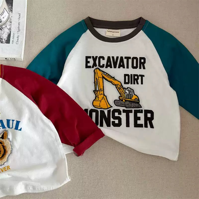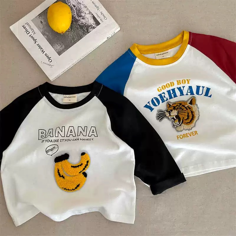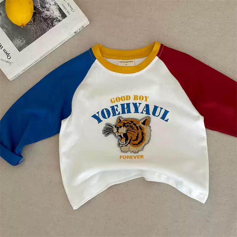 면 어린이 긴팔 티셔츠 가을 새 소년과 소녀 만화 자수 어깨 티셔츠 아기 콘트라스트베이스 셔츠스토어 가기