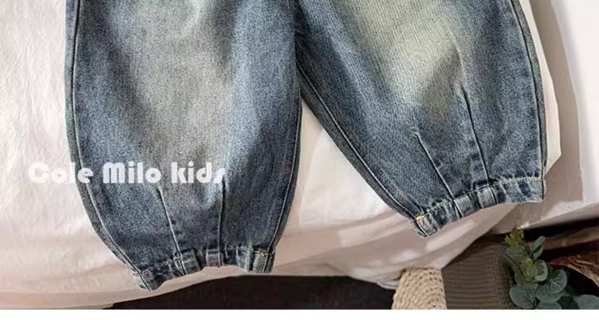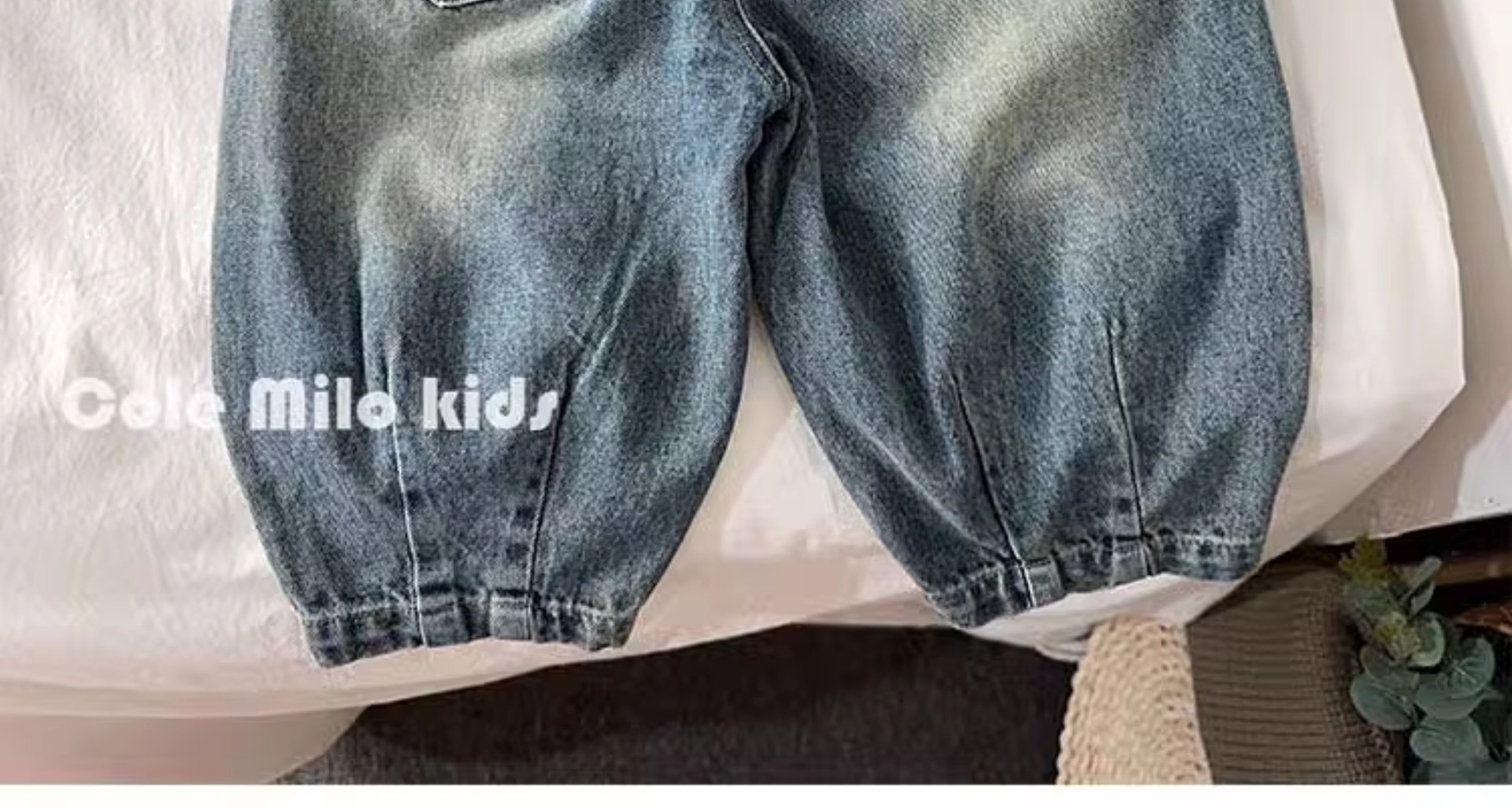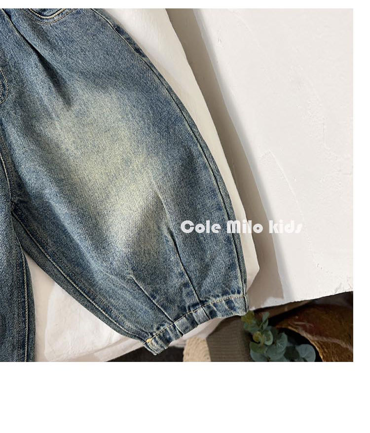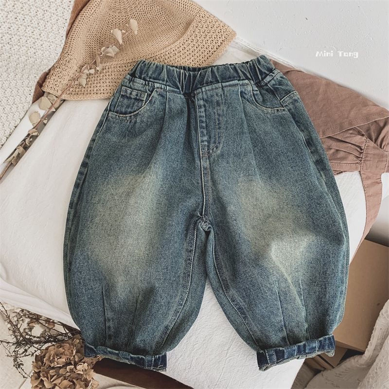 어린이 한국 캐주얼 바지 청바지 소년 소녀 2024 가을 새로운 아기 블루머가 느슨하다스토어 가기