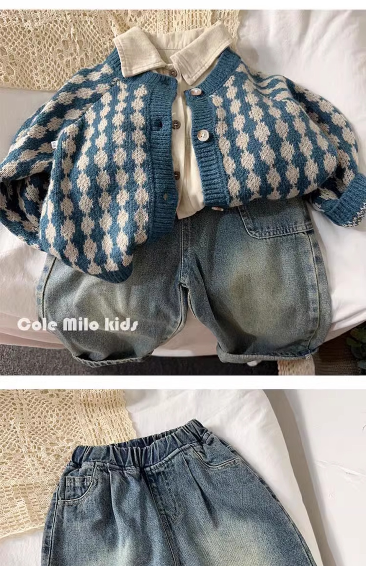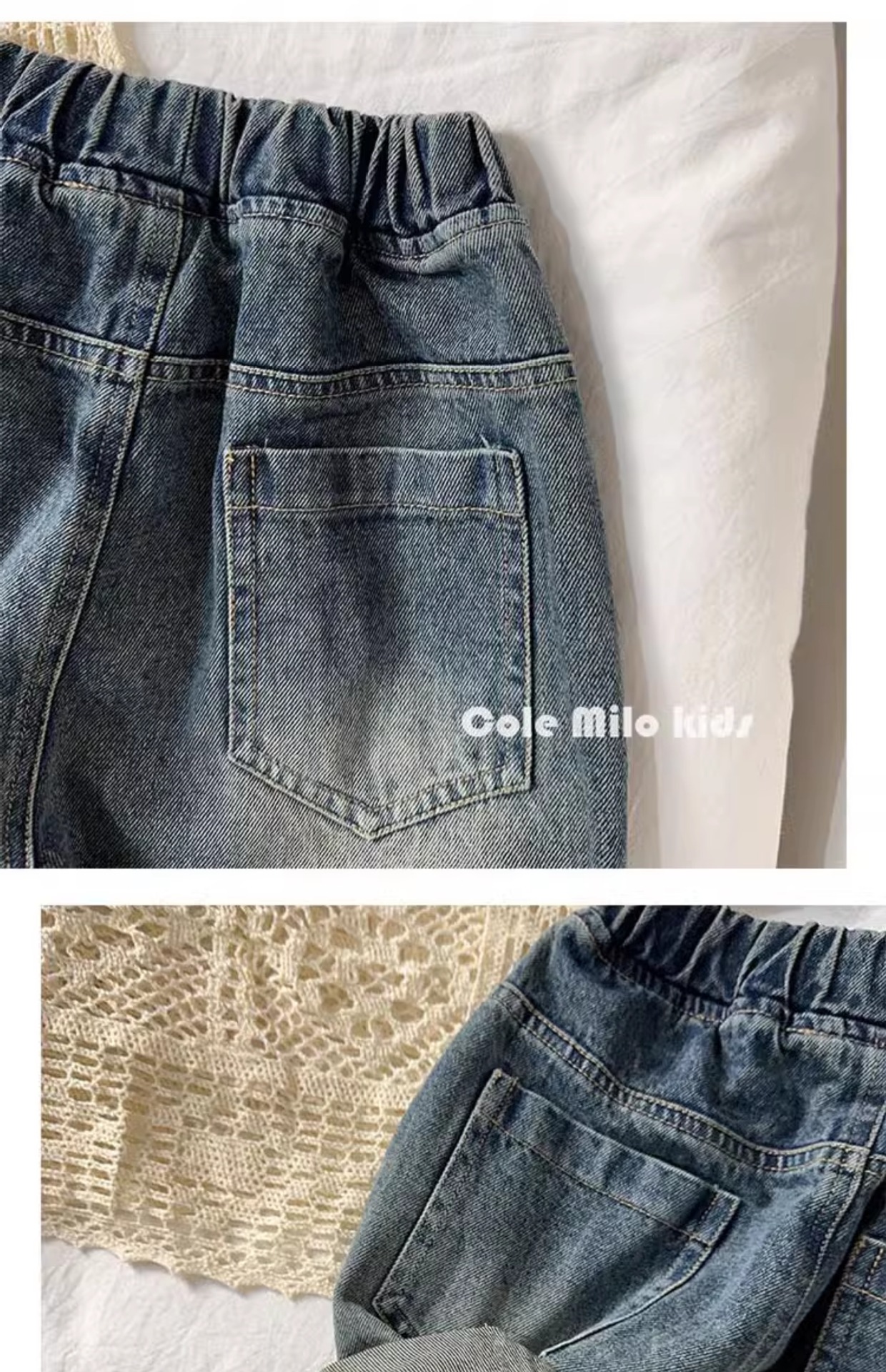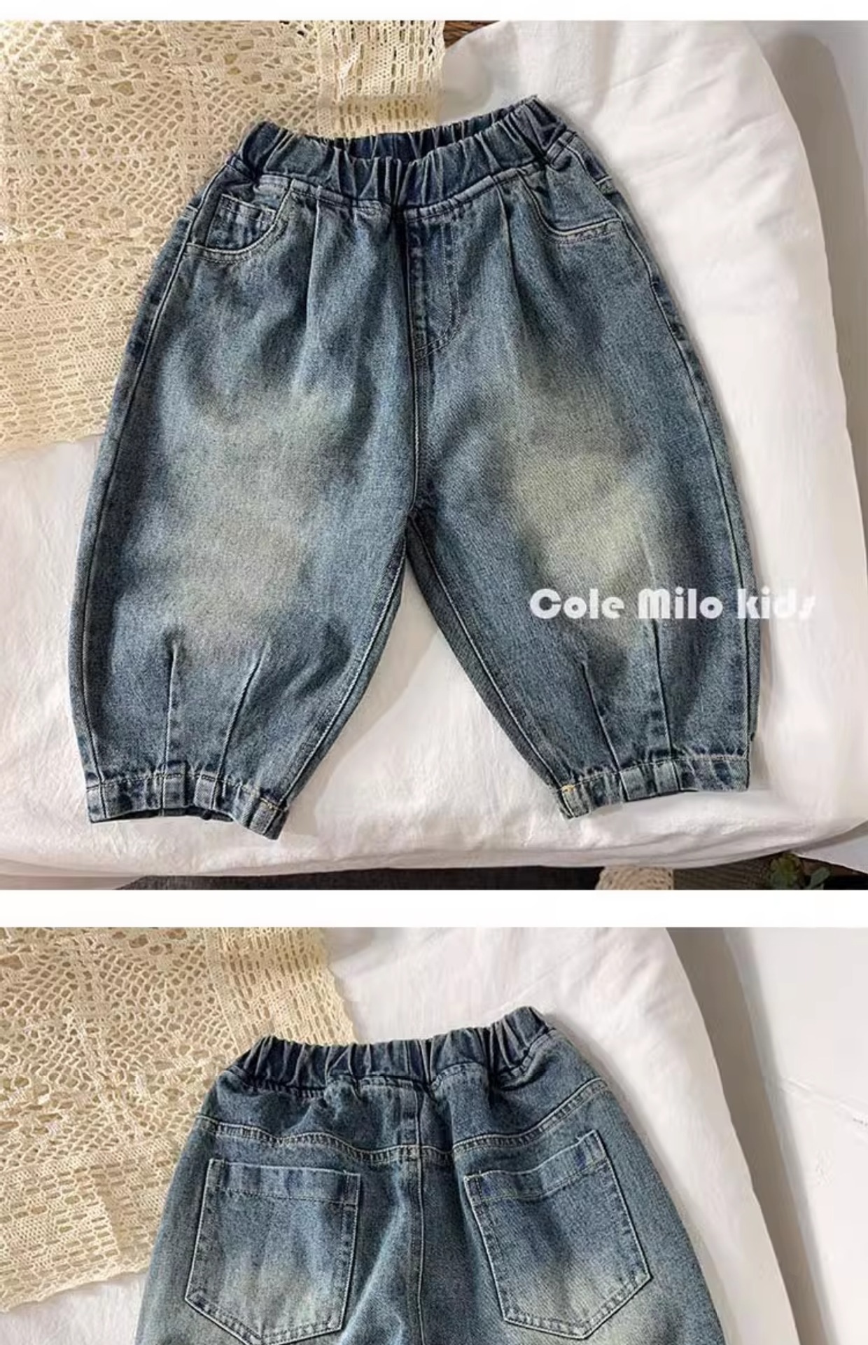 어린이 한국 캐주얼 바지 청바지 소년 소녀 2024 가을 새로운 아기 블루머가 느슨하다스토어 가기