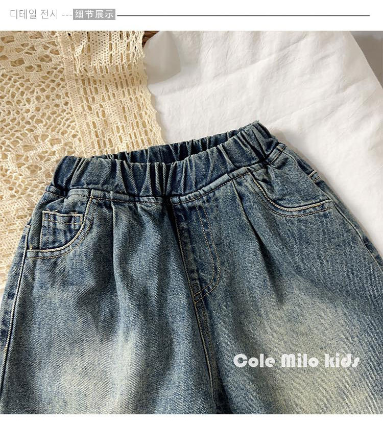 어린이 한국 캐주얼 바지 청바지 소년 소녀 2024 가을 새로운 아기 블루머가 느슨하다