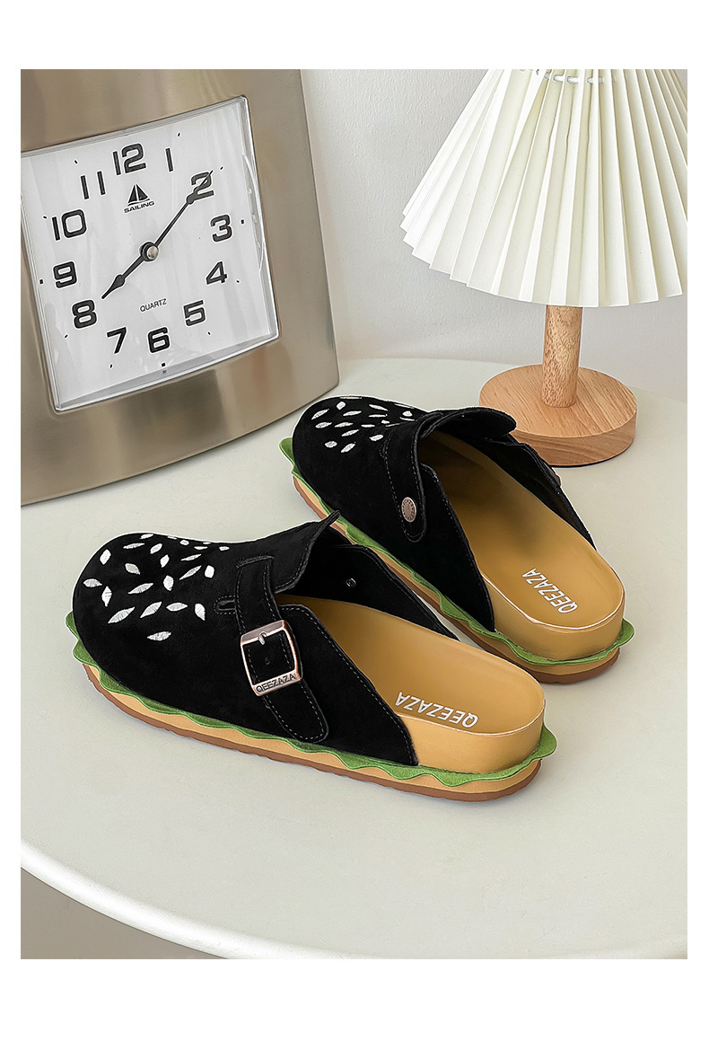 여름 게으른 보켄 신발 남성과 여성의 발가락 커플 신발 새 샌들 반 지원 야외 유행 두꺼운 단독 높이 증가 슬리퍼스토어 가기