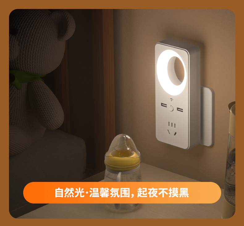 음성 음성 제어 LED 야간 눈 보호 침실 침대 옆 램프 플러그인 통합 USB 소켓 플러그인 변환기스토어 가기