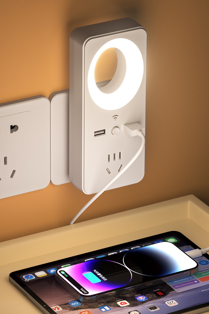 음성 음성 제어 LED 야간 눈 보호 침실 침대 옆 램프 플러그인 통합 USB 소켓 플러그인 변환기