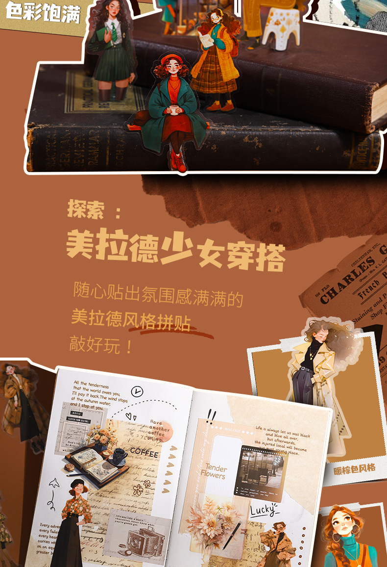 아름다운 날 복고풍 캐릭터 스티커 Maillard 소녀 시리즈 20 에 방수 DIY 스티커 6스토어 가기