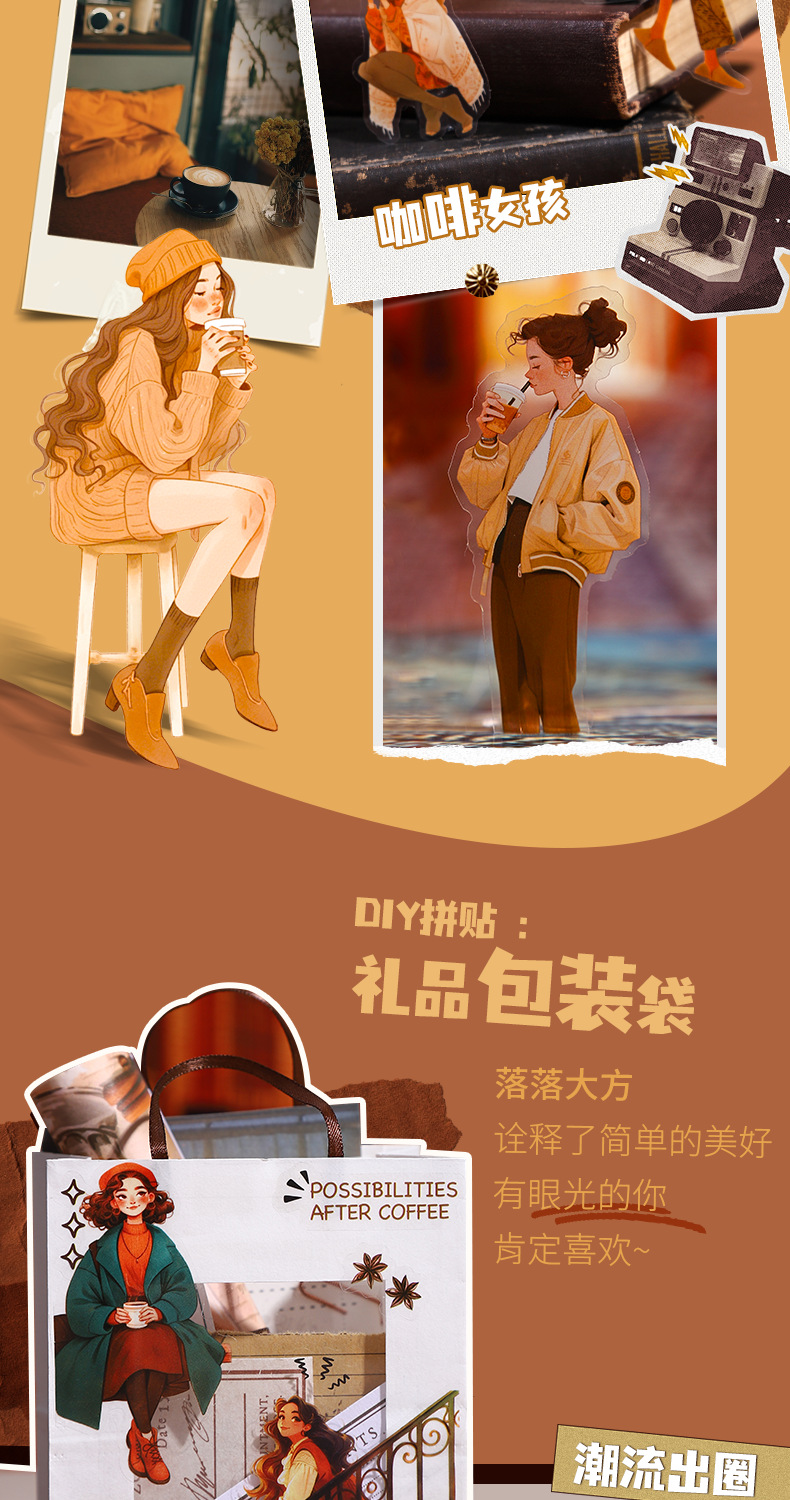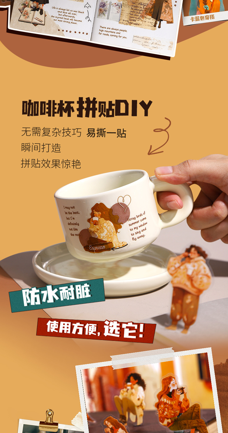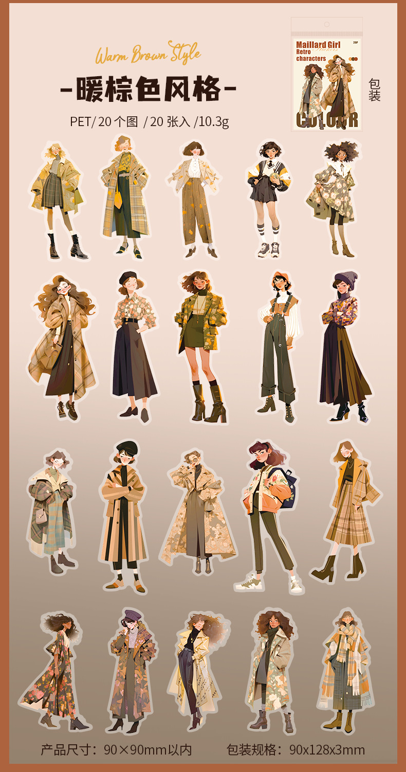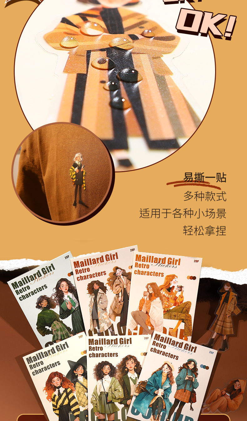 아름다운 날 복고풍 캐릭터 스티커 Maillard 소녀 시리즈 20 에 방수 DIY 스티커 6