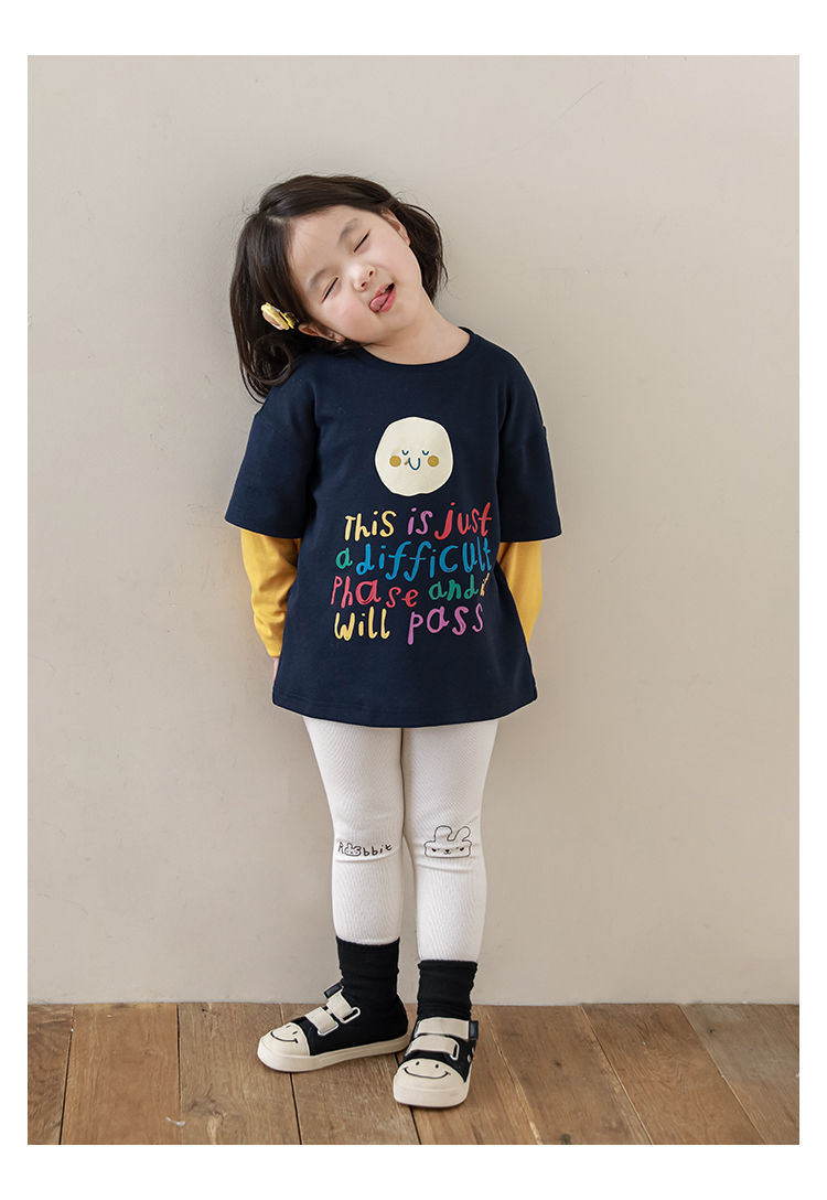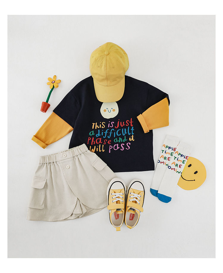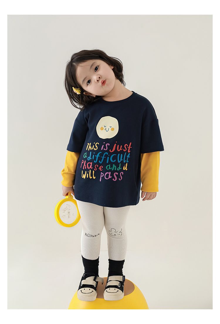 Wuri Boo Girl의 재미있는 웃는 얼굴 만화 컬러 콘트라스트 페이크 2 피스 티셔츠 가을 귀여운 캐주얼 탑 트렌디
