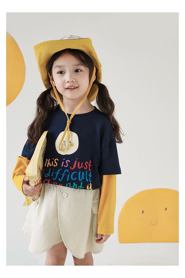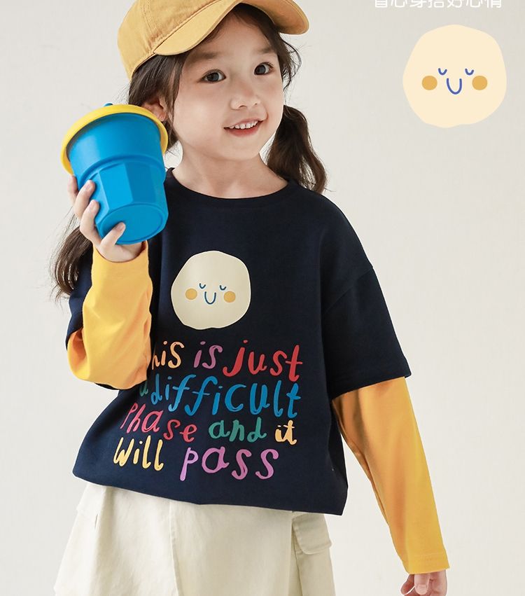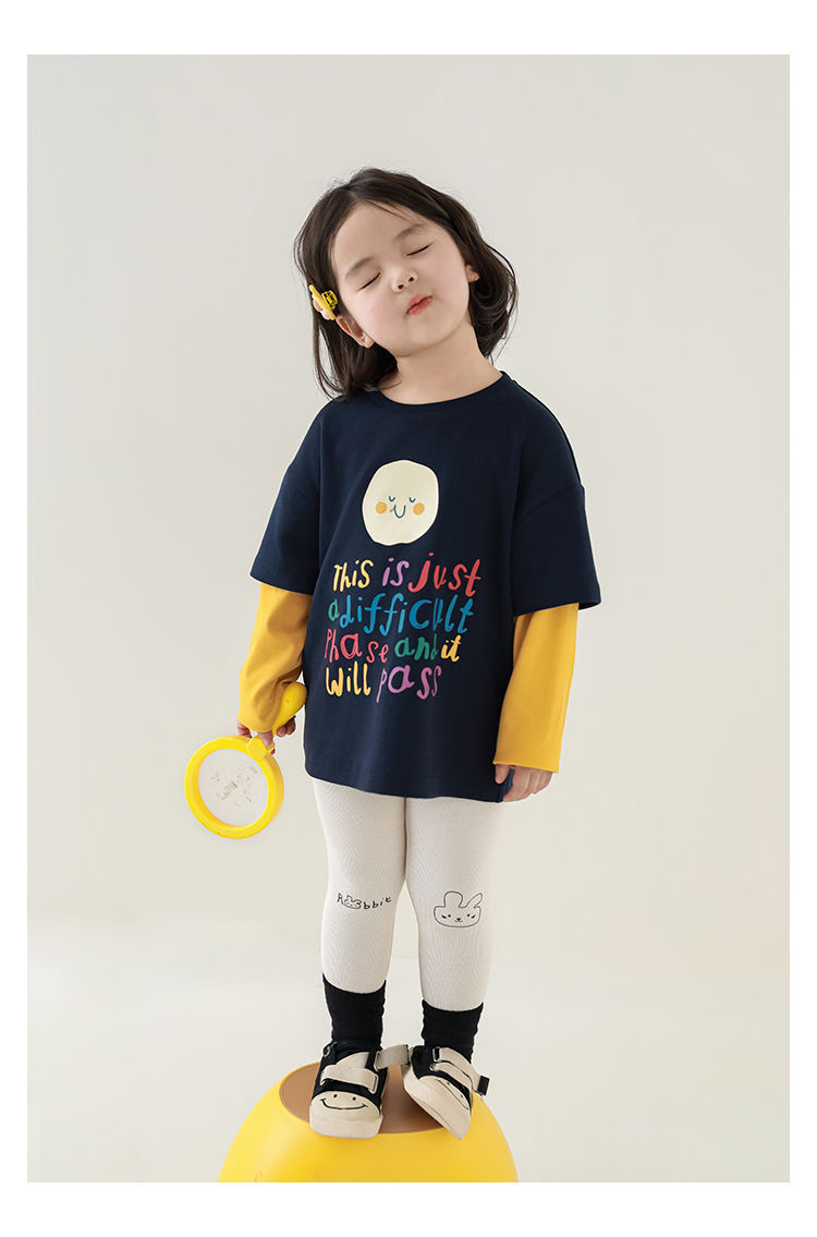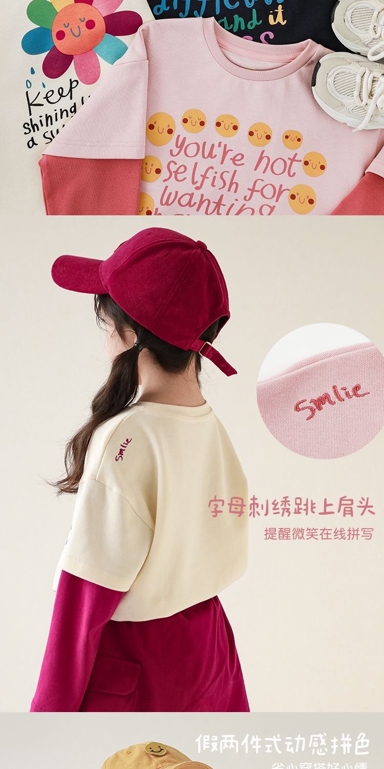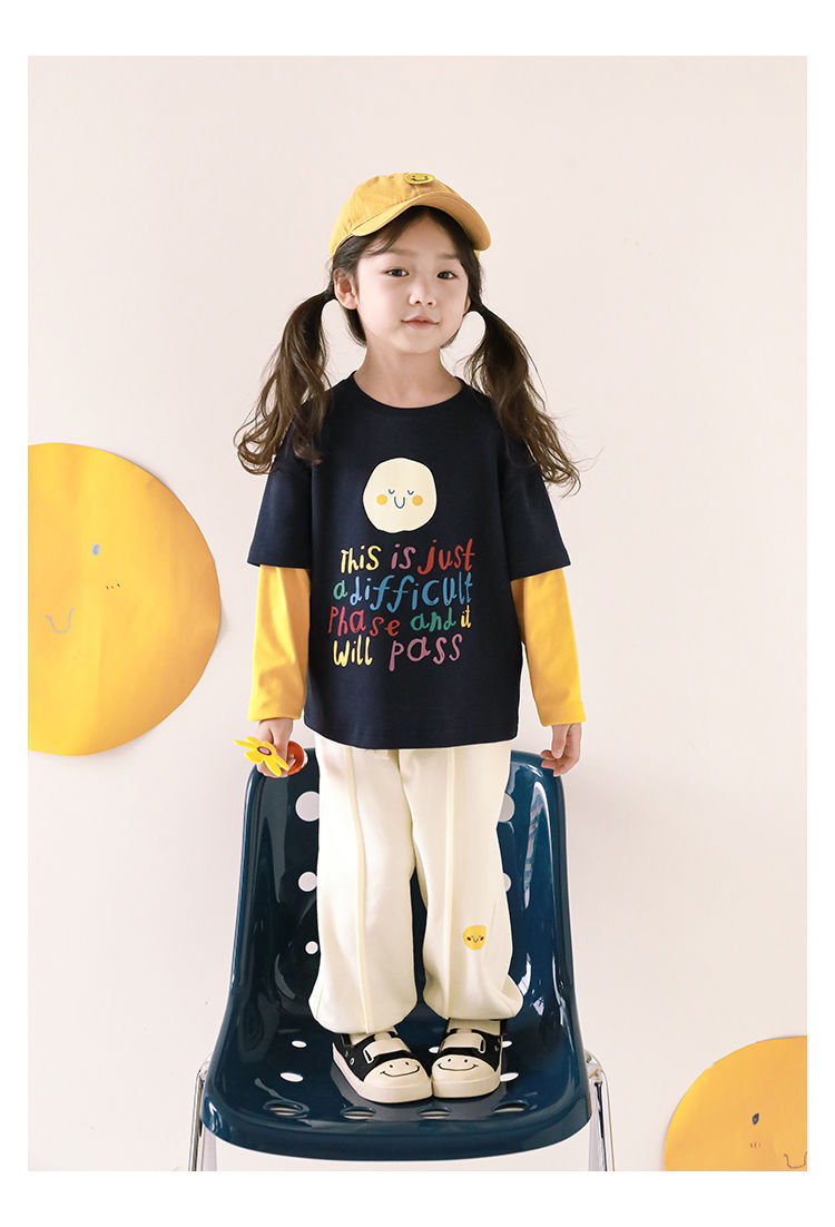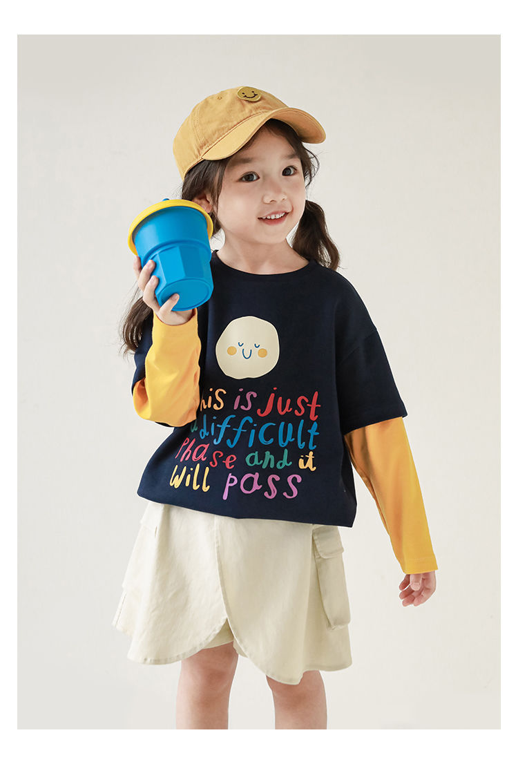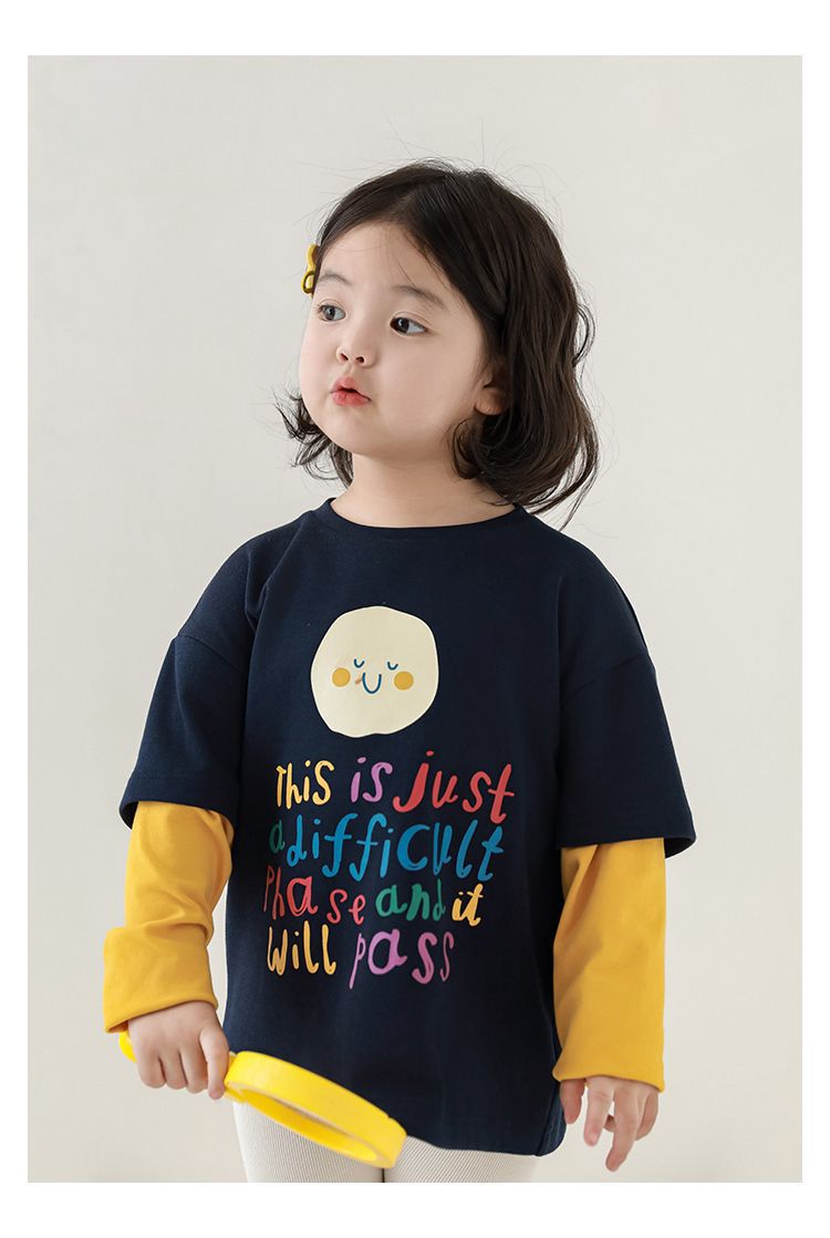Wuri Boo Girl의 재미있는 웃는 얼굴 만화 컬러 콘트라스트 페이크 2 피스 티셔츠 가을 귀여운 캐주얼 탑 트렌디스토어 가기