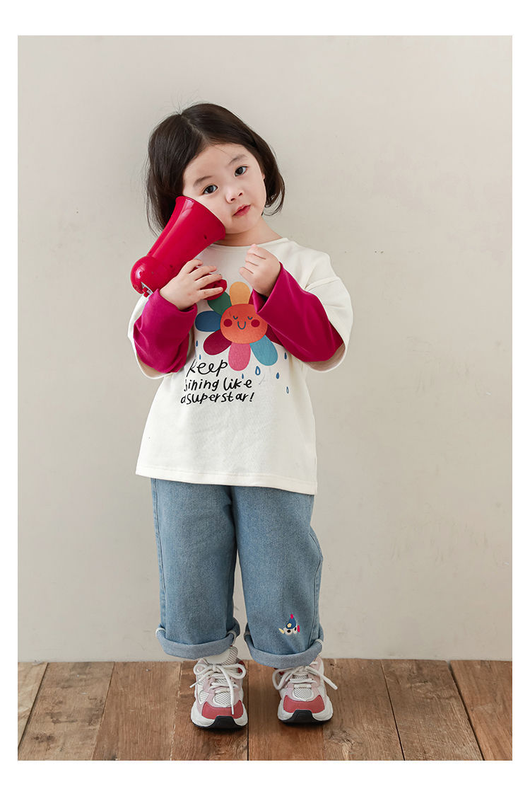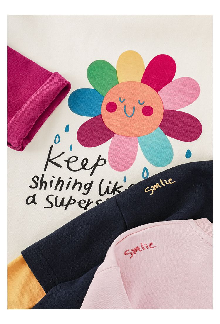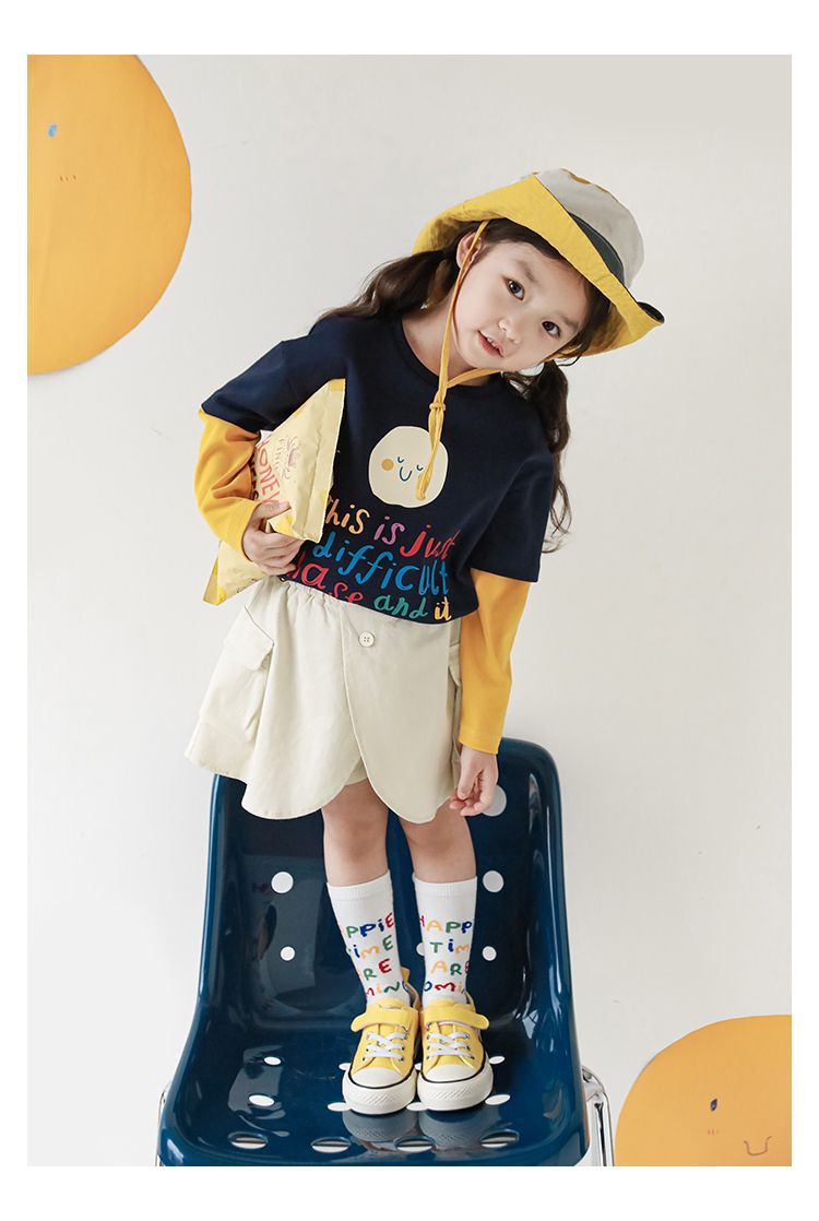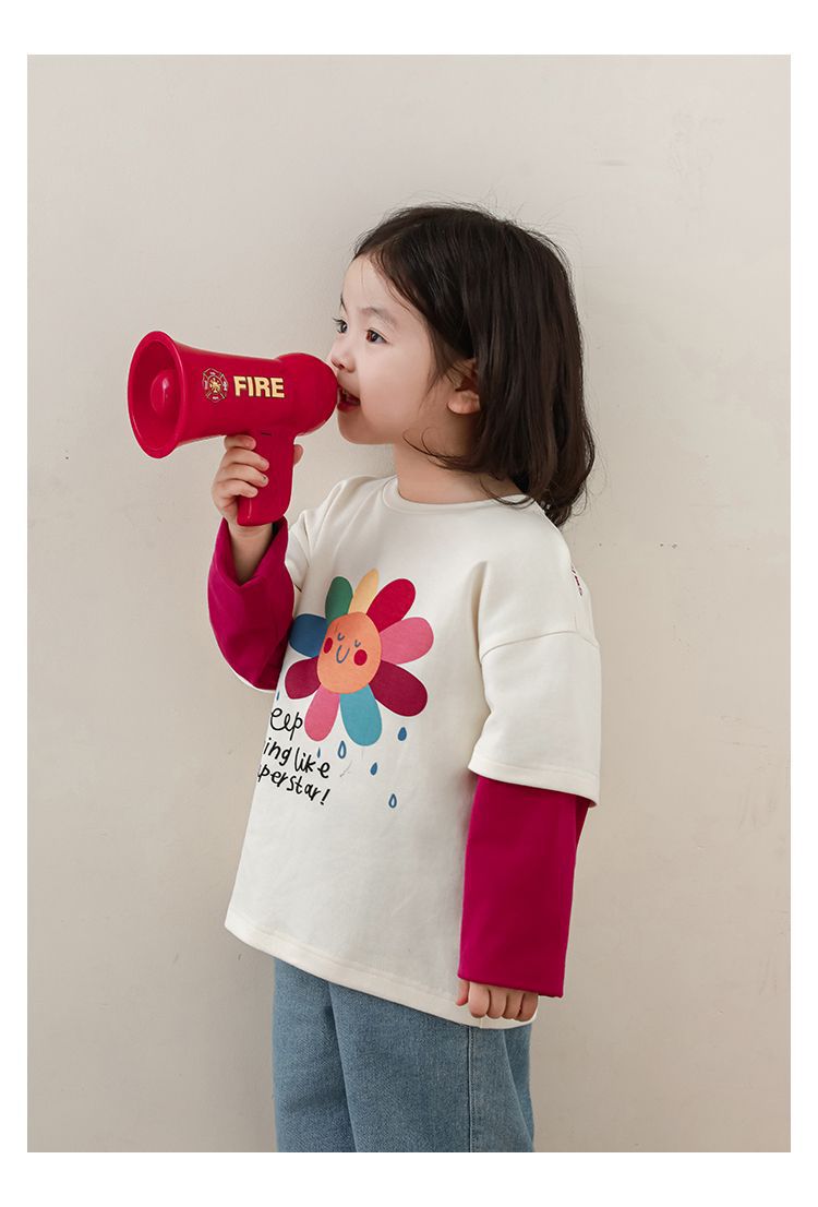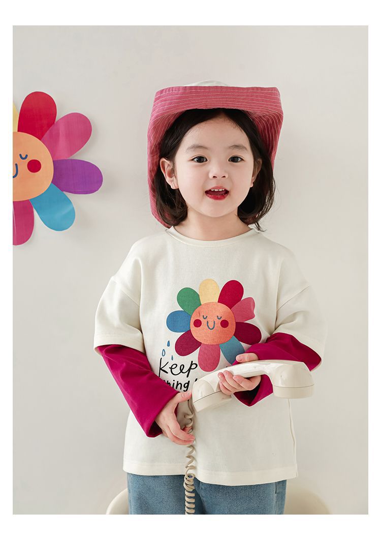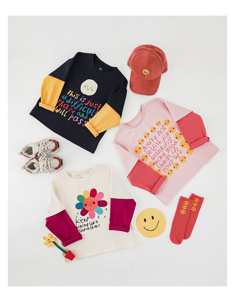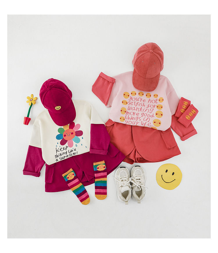 Wuri Boo Girl의 재미있는 웃는 얼굴 만화 컬러 콘트라스트 페이크 2 피스 티셔츠 가을 귀여운 캐주얼 탑 트렌디스토어 가기