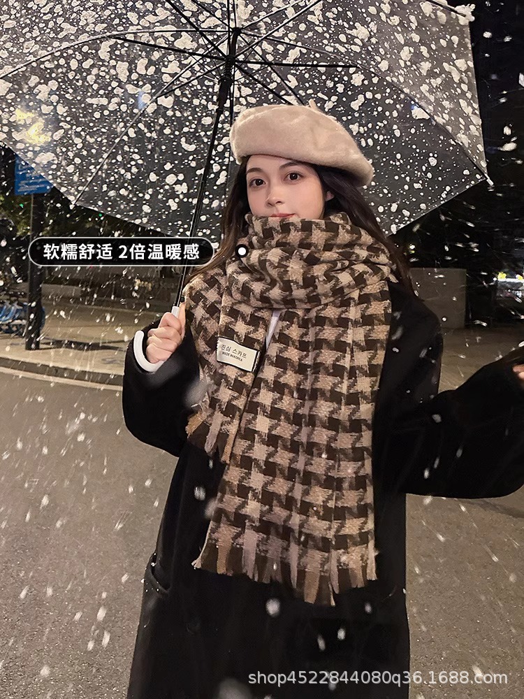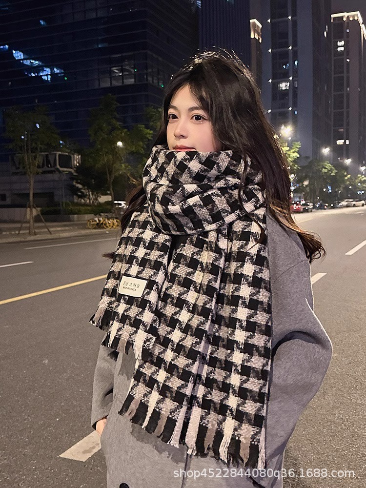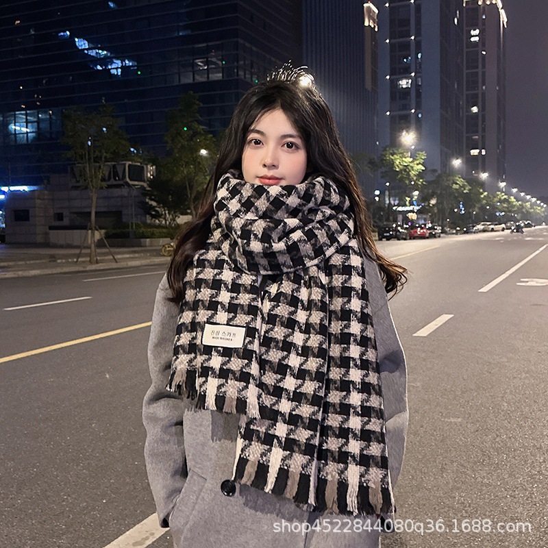 격자 무늬 스카프 여자 겨울 2022 년 새 한국식 분위기 조감도 모방 캐시미어 따뜻한 목도리 고급 감각 긴 스카프