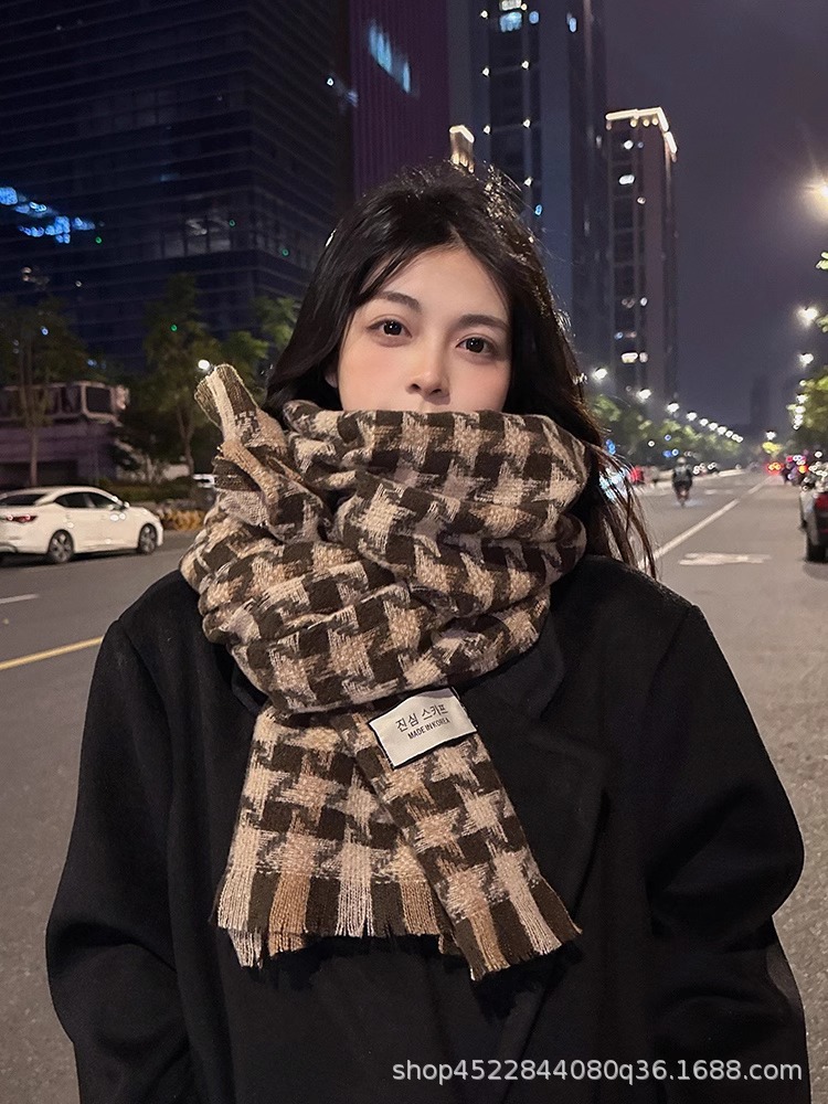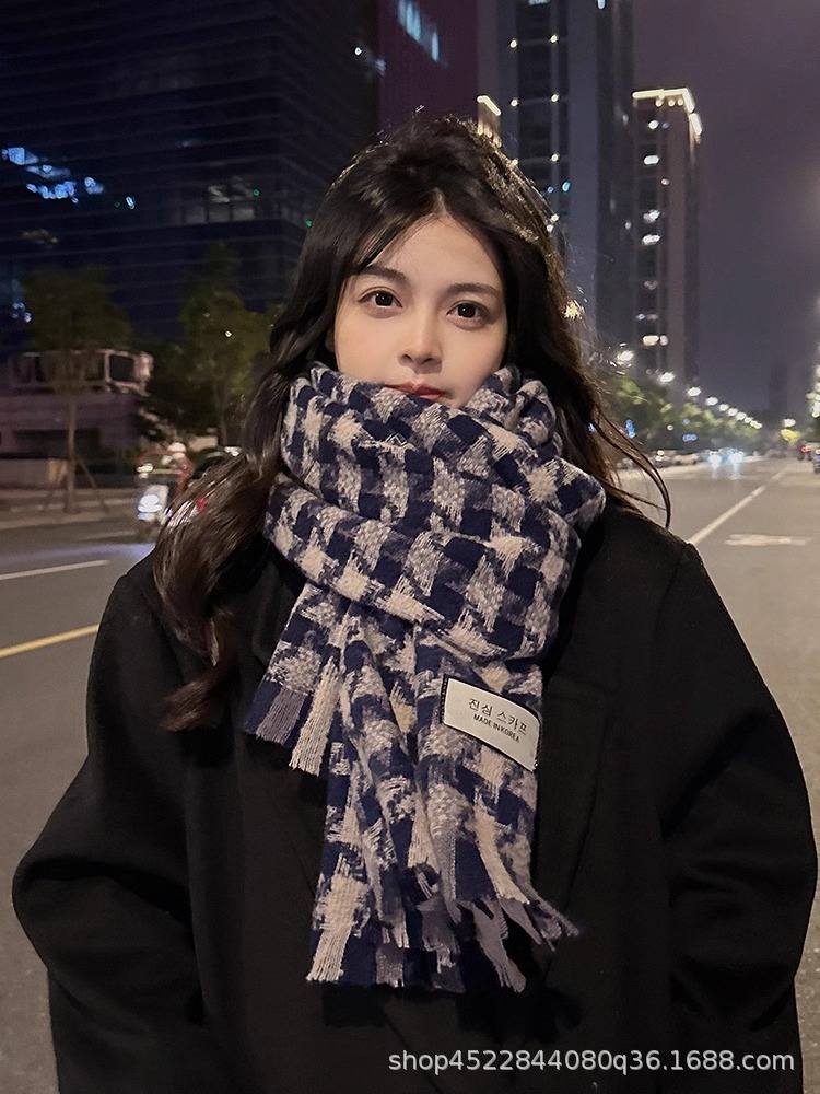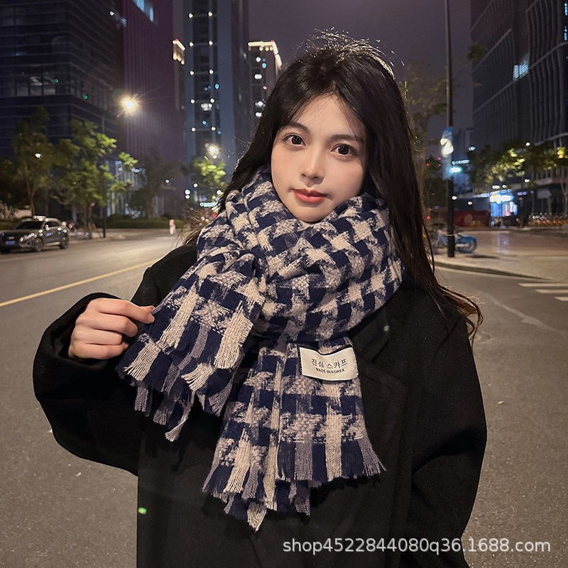 격자 무늬 스카프 여자 겨울 2022 년 새 한국식 분위기 조감도 모방 캐시미어 따뜻한 목도리 고급 감각 긴 스카프스토어 가기