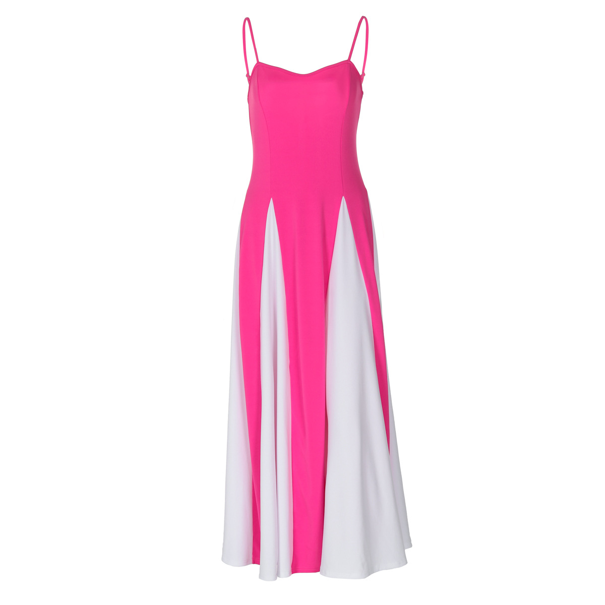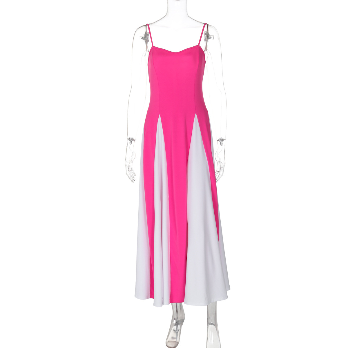 유럽과 미국 스타일의 대외 무역 여성 의류 2025 봄 신상 스커트 세련된 대비 색상 스플 라이스 서스펜더 드레스 도매스토어 가기