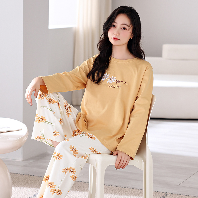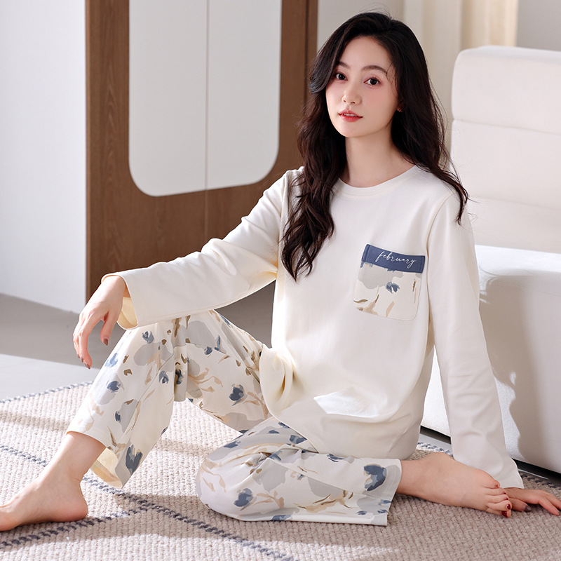 2024 새로운 봄과 가을 잠옷 여성의 가을 면 긴 소매 봄과 가을과 겨울 얇은 홈 착용 세트스토어 가기