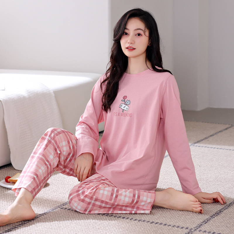 2024 새로운 봄과 가을 잠옷 여성의 가을 면 긴 소매 봄과 가을과 겨울 얇은 홈 착용 세트