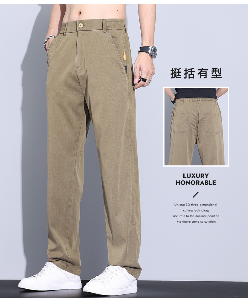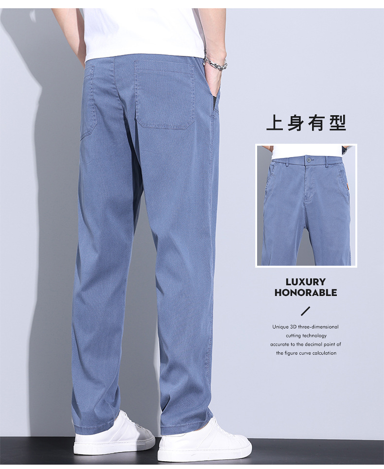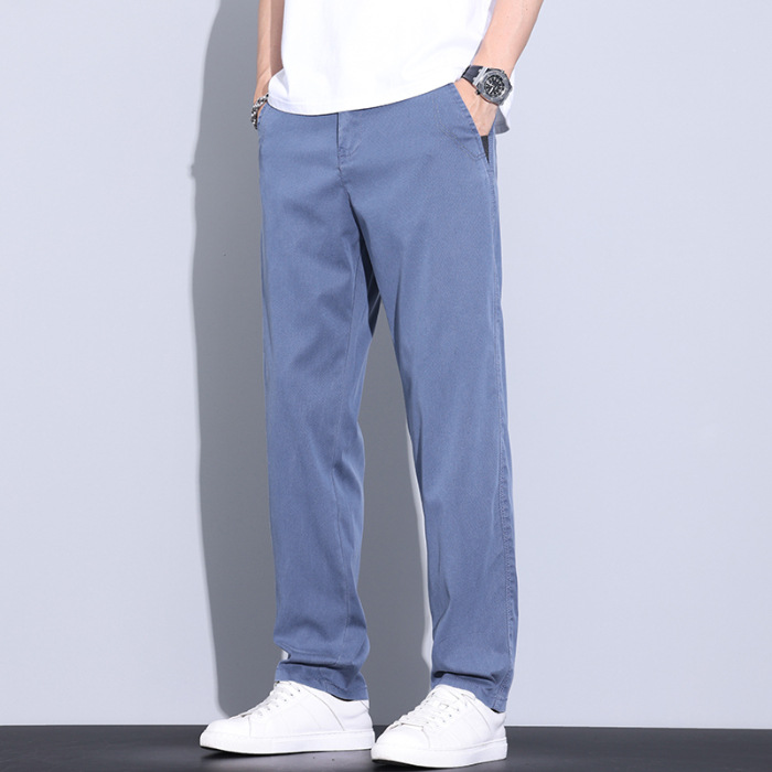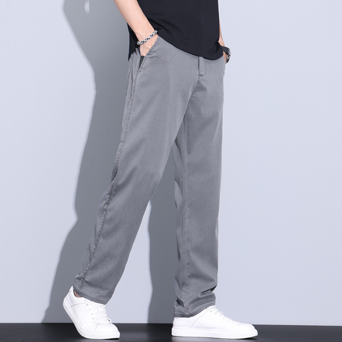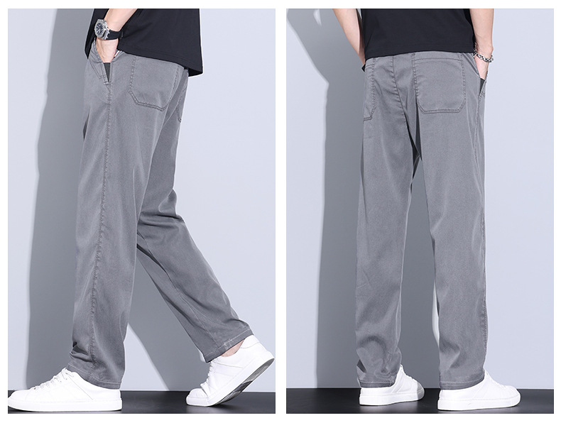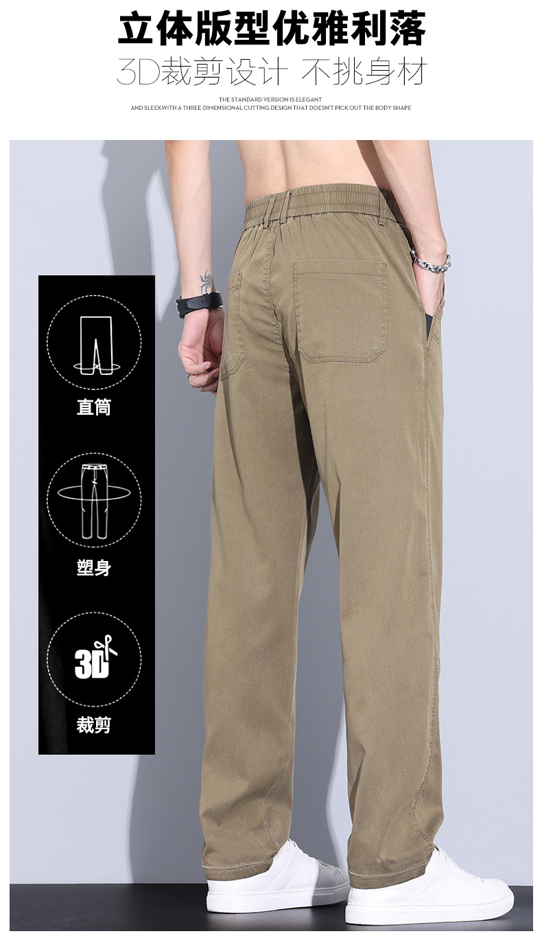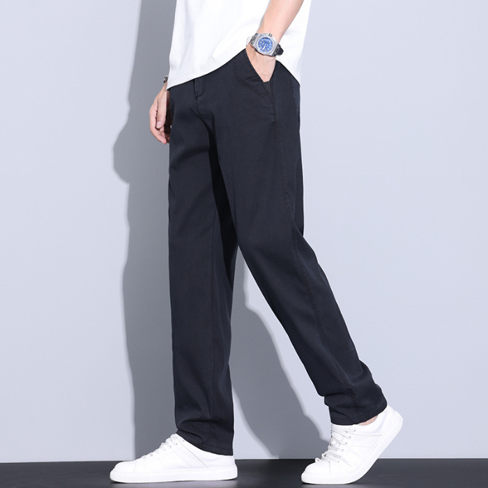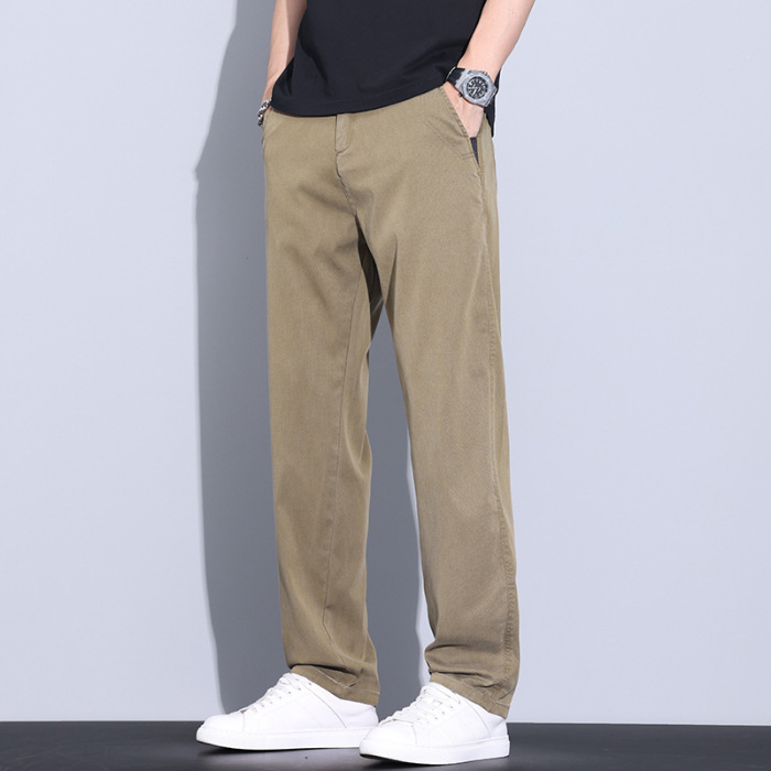 Lyocell Tens 젊은 남성을위한 느슨한 스트레이트 와이드 레그 바지 여름 인기있는 올 매치 아빠 얇은 통기성 캐주얼스토어 가기