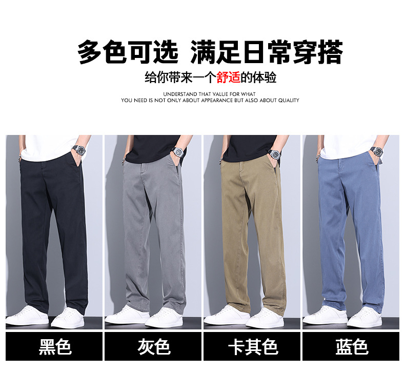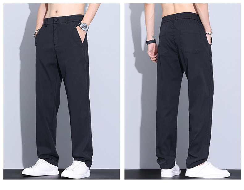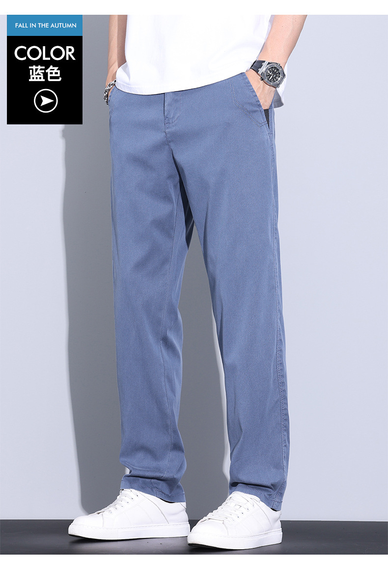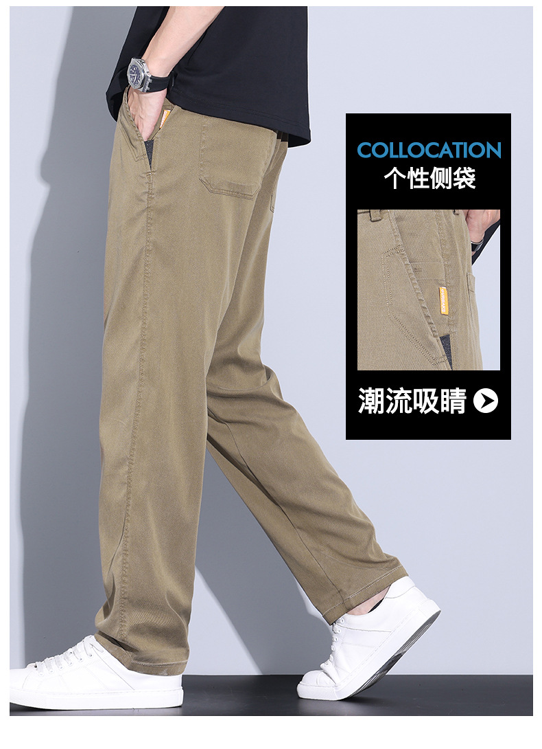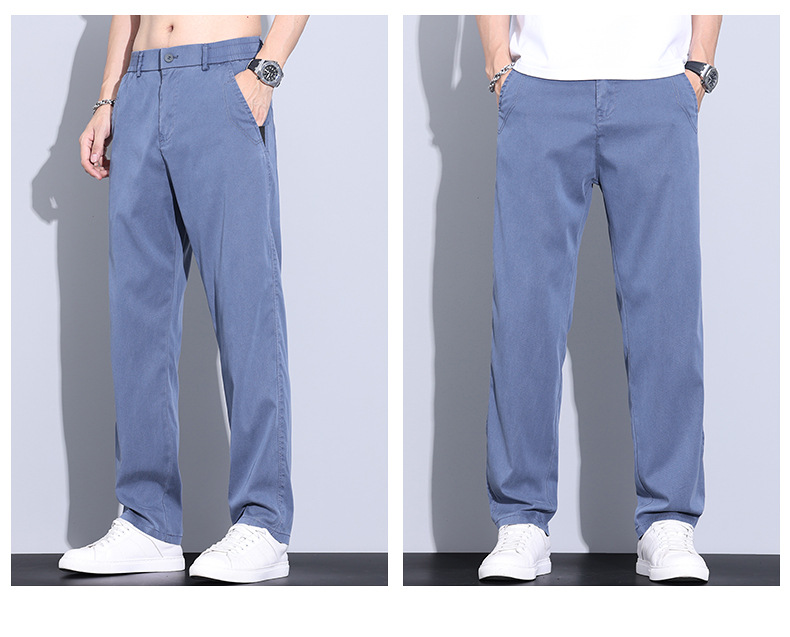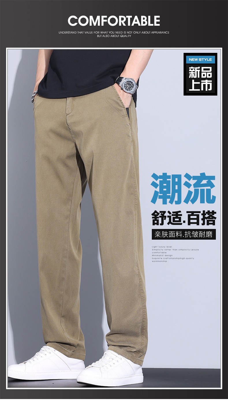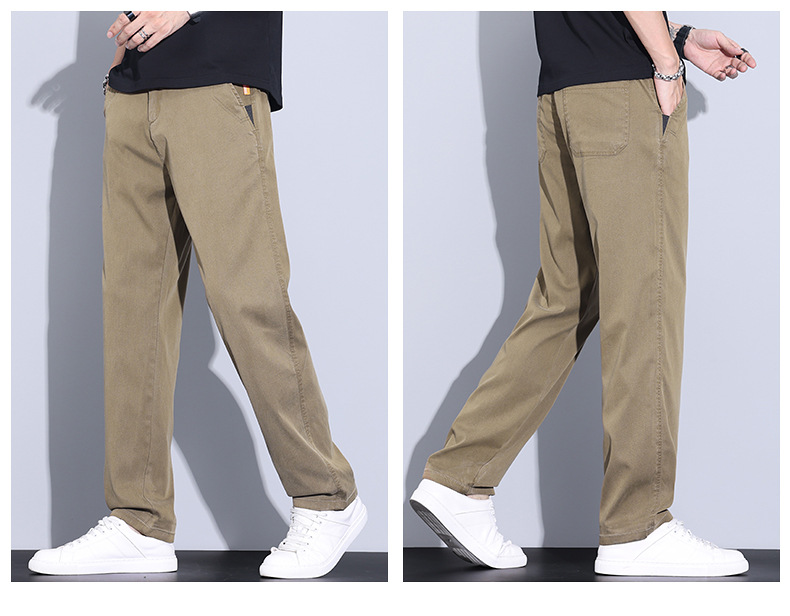 Lyocell Tens 젊은 남성을위한 느슨한 스트레이트 와이드 레그 바지 여름 인기있는 올 매치 아빠 얇은 통기성 캐주얼스토어 가기