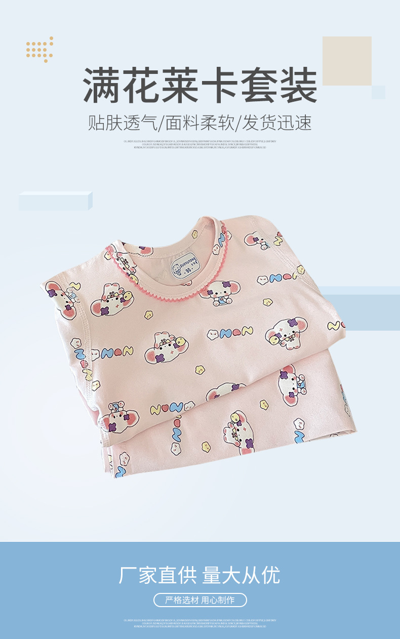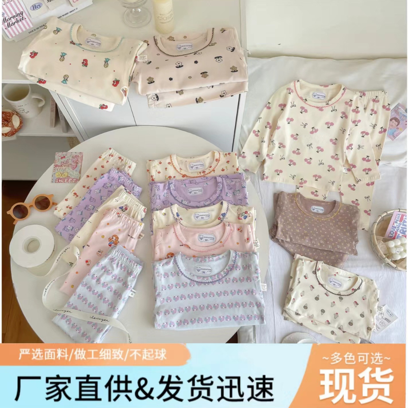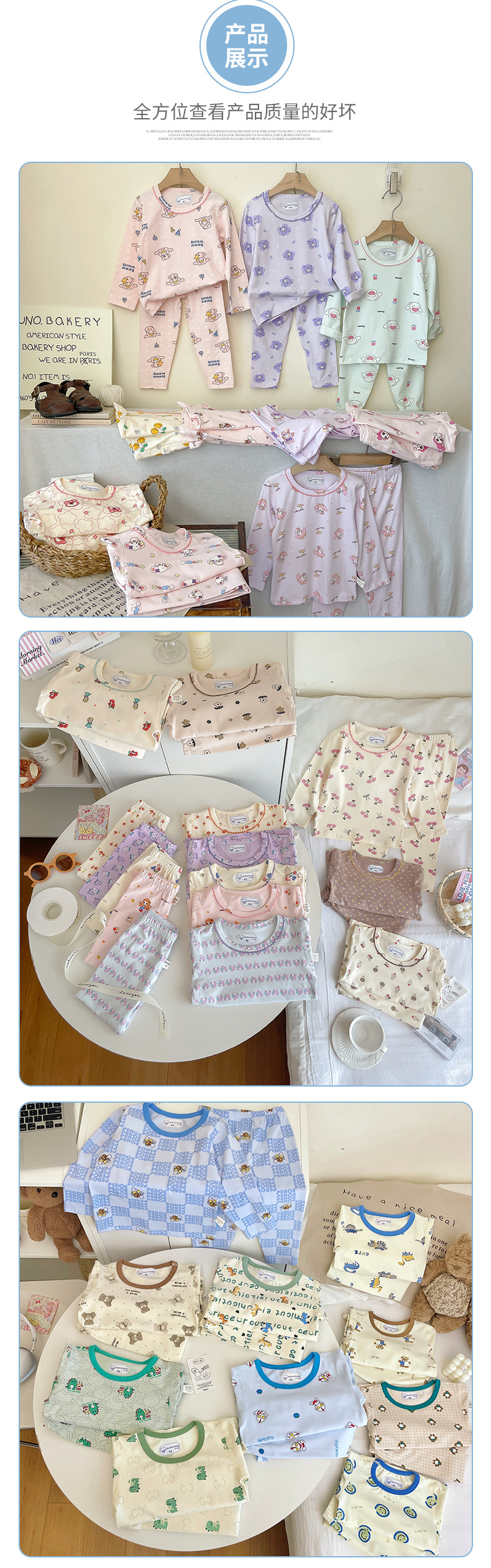 Zuoyu 어린이 2024 가을/겨울 새로운 전체 꽃 라이크라 크루 넥 소년과 소녀 만화 세트 홈 옷 아기 잠옷스토어 가기