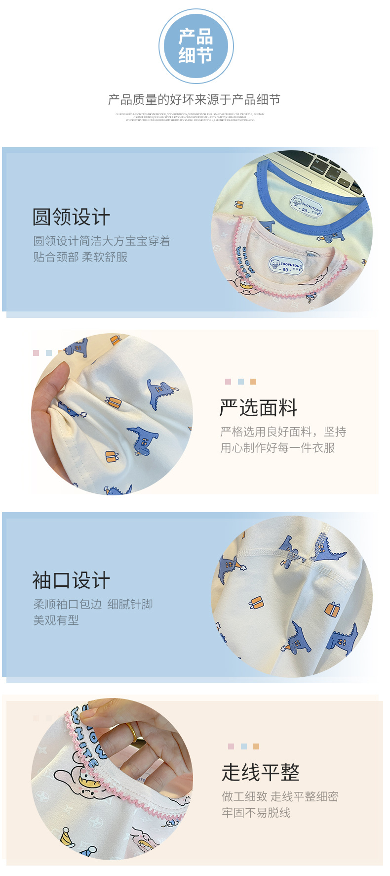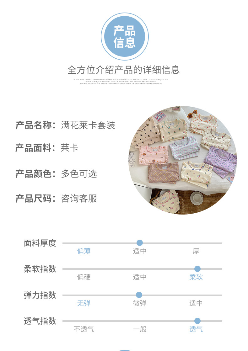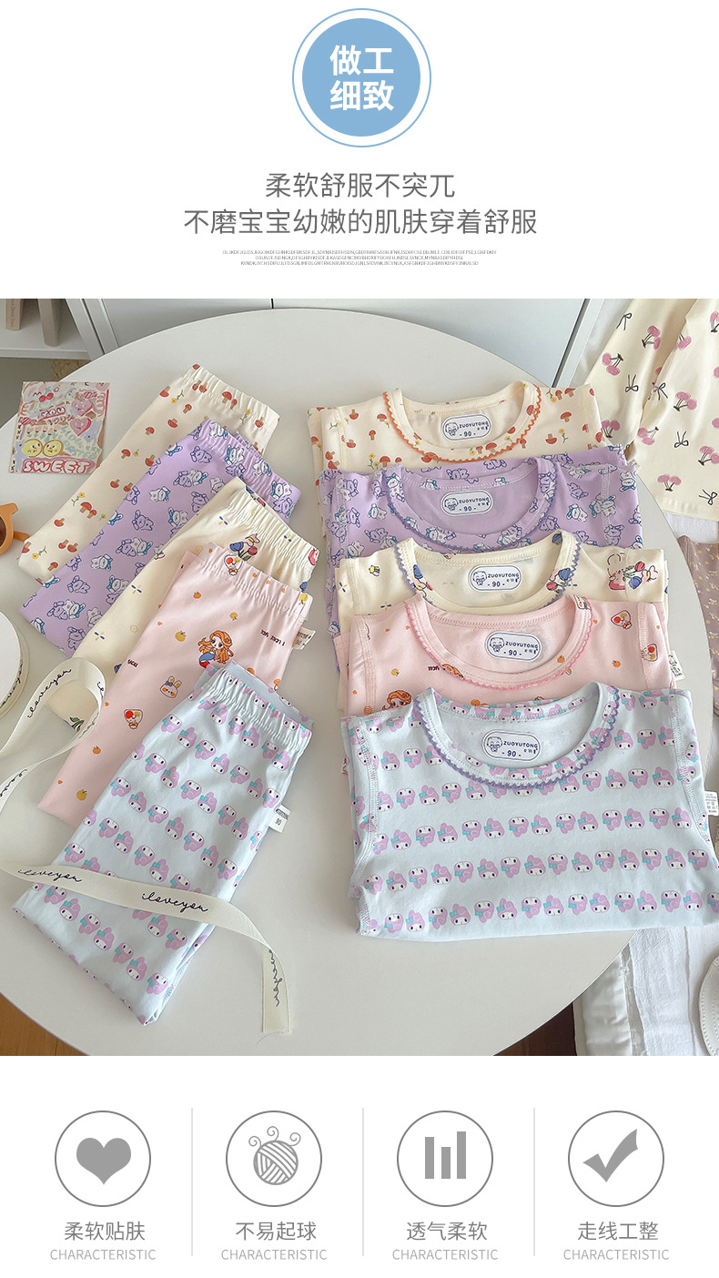 Zuoyu 어린이 2024 가을/겨울 새로운 전체 꽃 라이크라 크루 넥 소년과 소녀 만화 세트 홈 옷 아기 잠옷스토어 가기