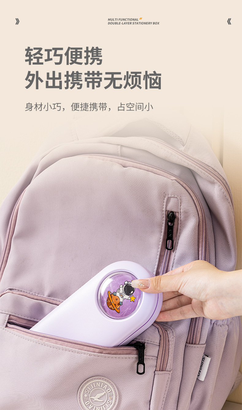 새로운 우주 비행사 더블 레이어 문구 케이스 만화 연필 케이스 소년 소녀 학생 연필 케이스 대용량 인쇄 로고스토어 가기