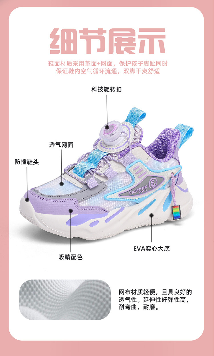 소녀 신발 2024 가을 새로운 메쉬 통기성 소녀 운동화 울트라 라이트 소프트 하단 올 매치 아동용 신발스토어 가기