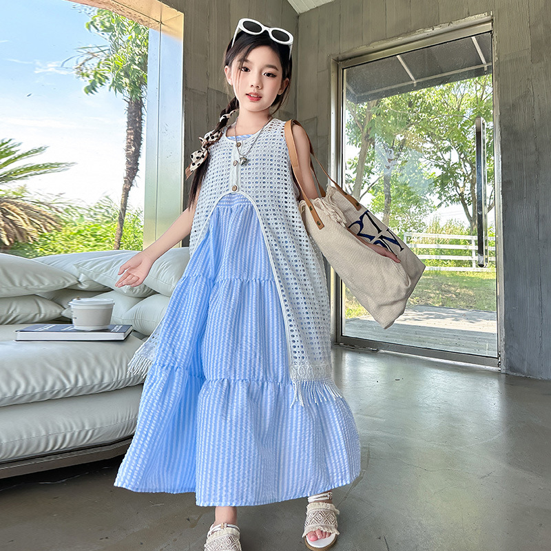 여자 드레스 2025 새로운 여름 달콤한 중공 해변 휴가 여름 서스펜더 스커트 여자를위한 투피스 세트스토어 가기