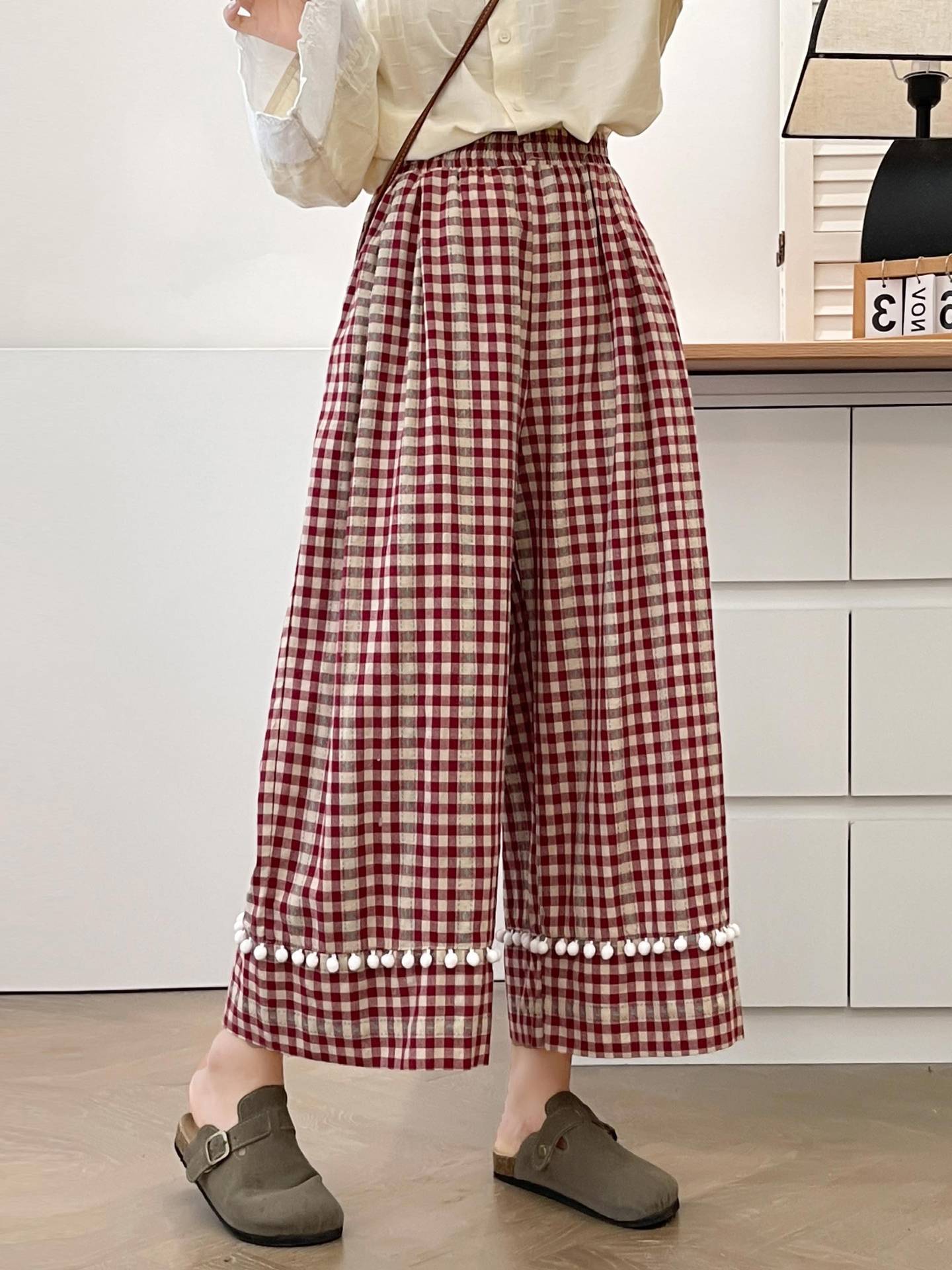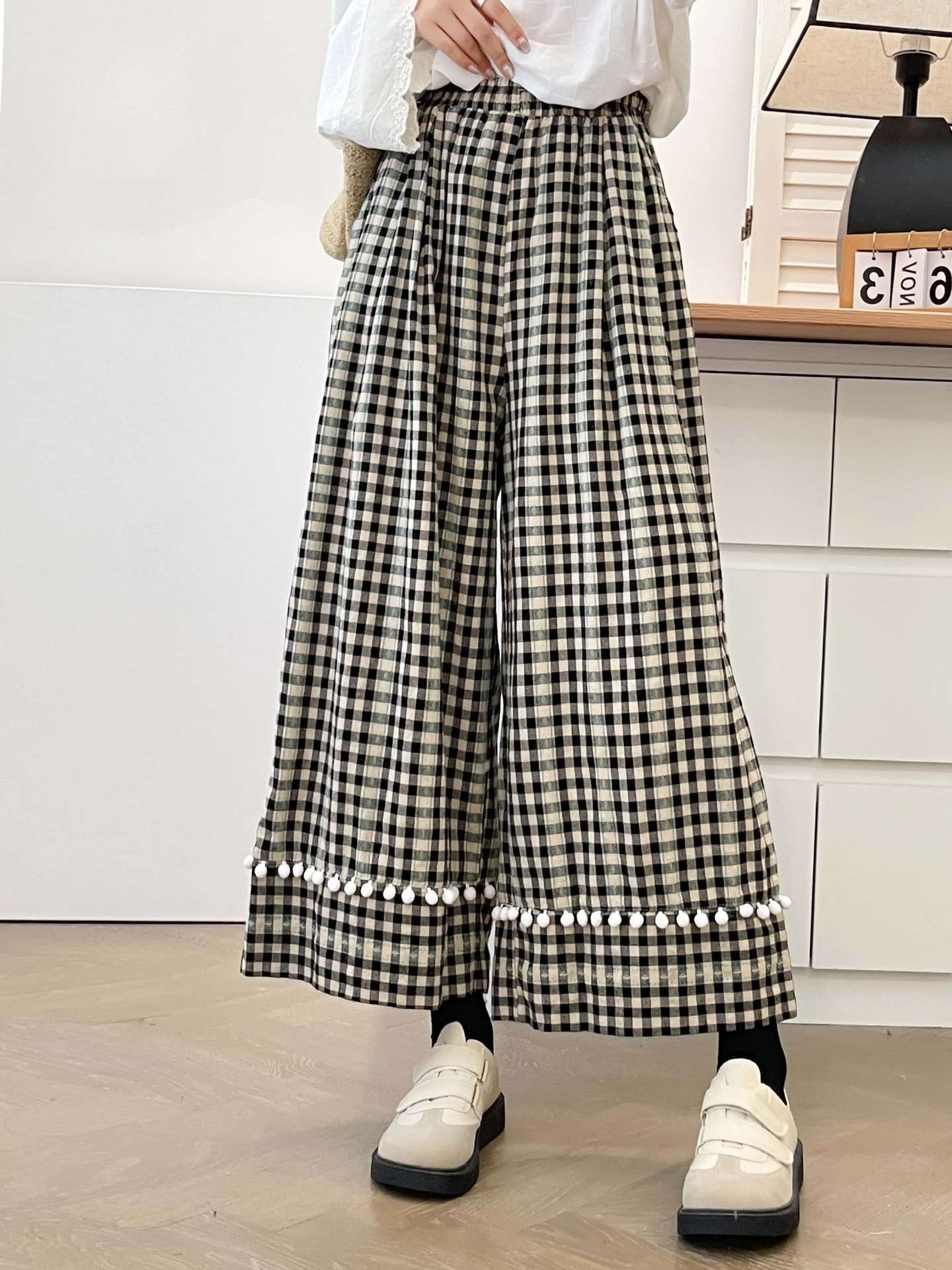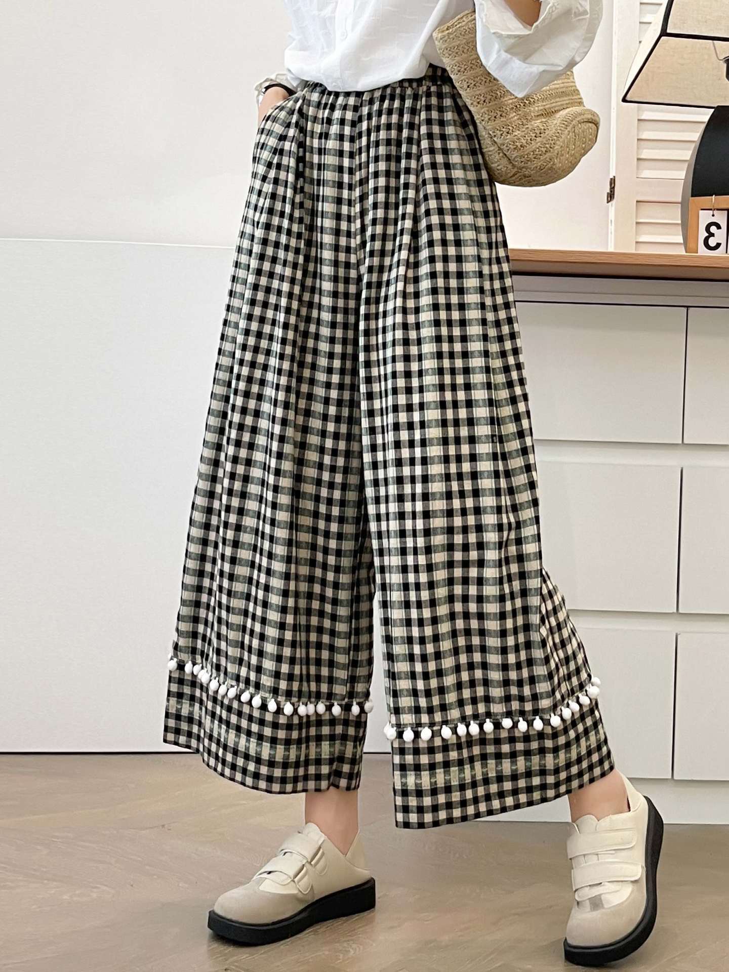 한국식 격자 무늬 와이드 레그 바지 여자 여름 새 도착 루즈핏 슬리밍 올매치 캐주얼 발목 길이 바지스토어 가기