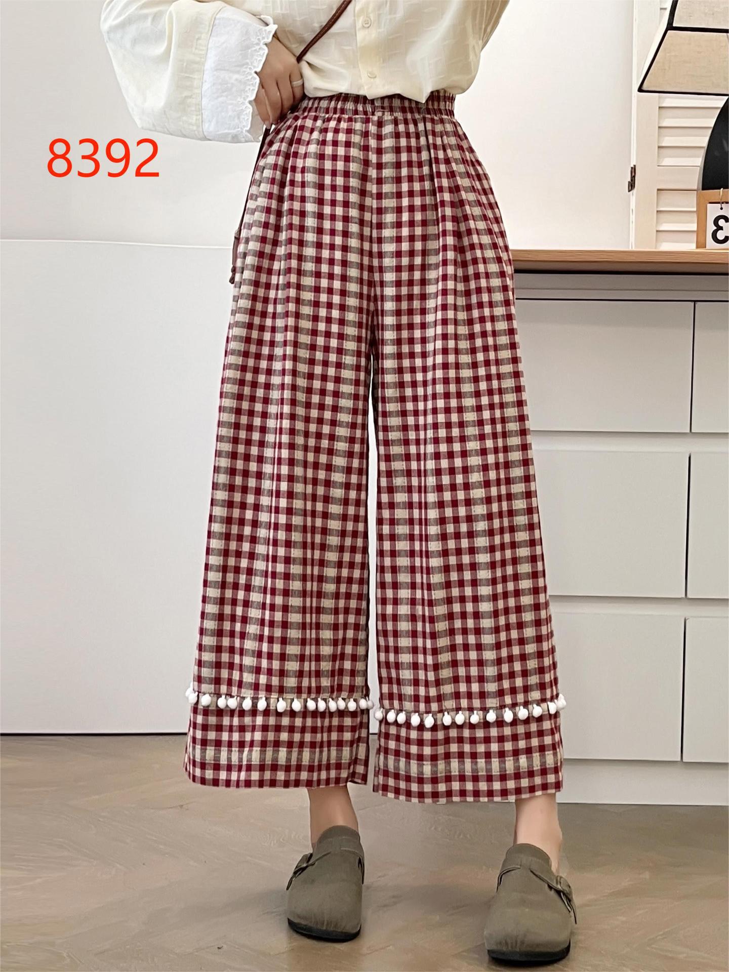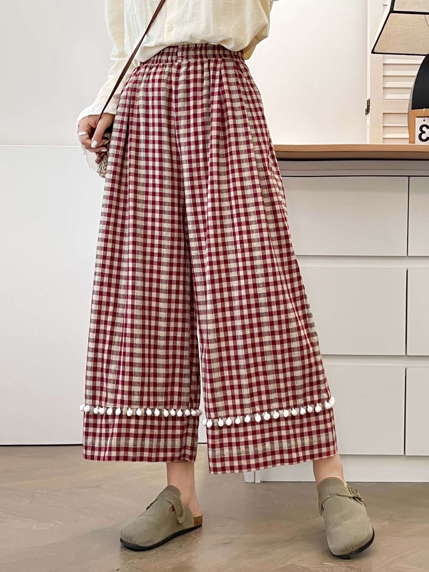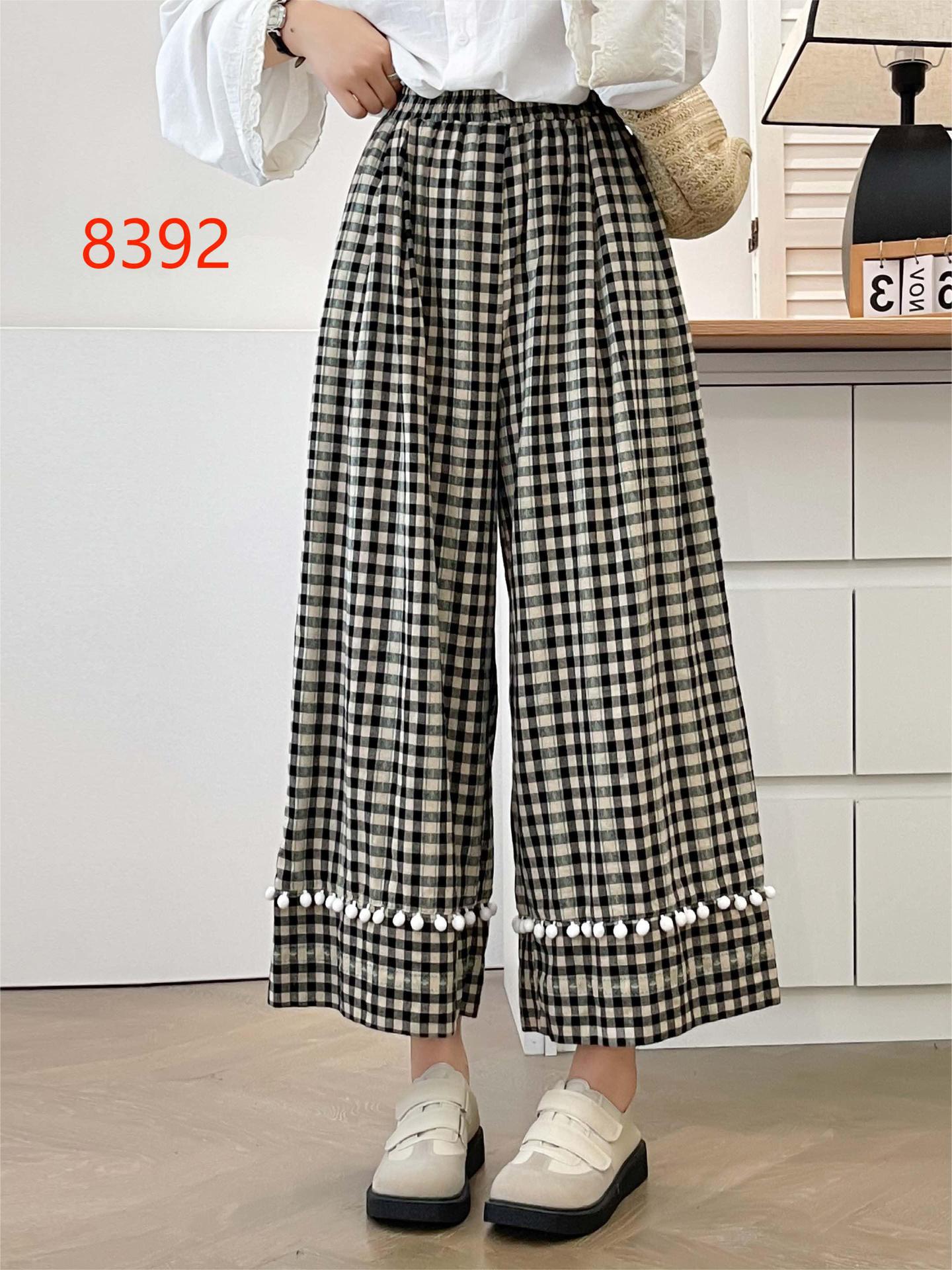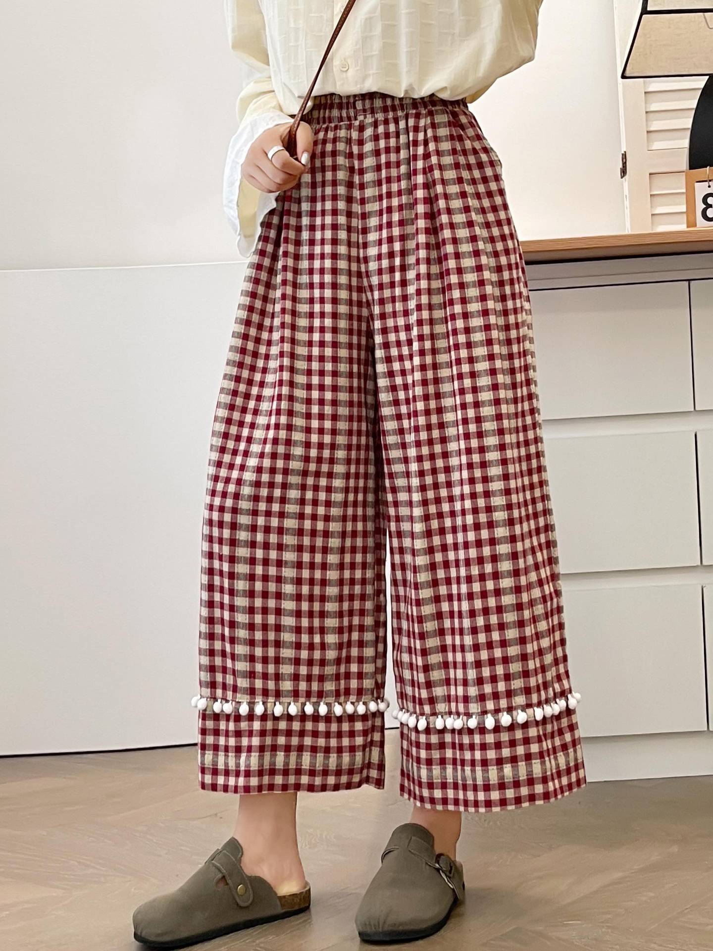 한국식 격자 무늬 와이드 레그 바지 여자 여름 새 도착 루즈핏 슬리밍 올매치 캐주얼 발목 길이 바지스토어 가기