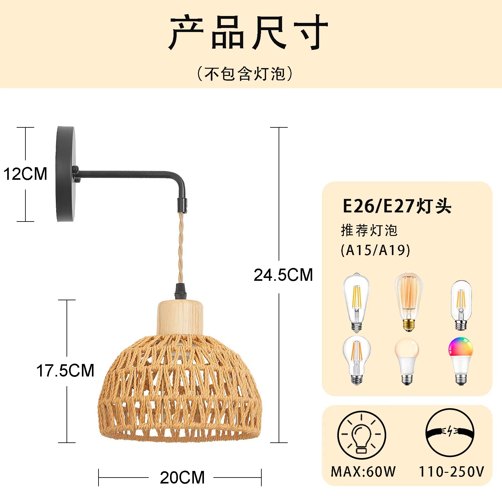 국경 등나무 벽 램프 복고풍 농가 대마 로프 벽 램프 일본식 짠 램프 침대 옆 침실 거실 국가 벽 램프