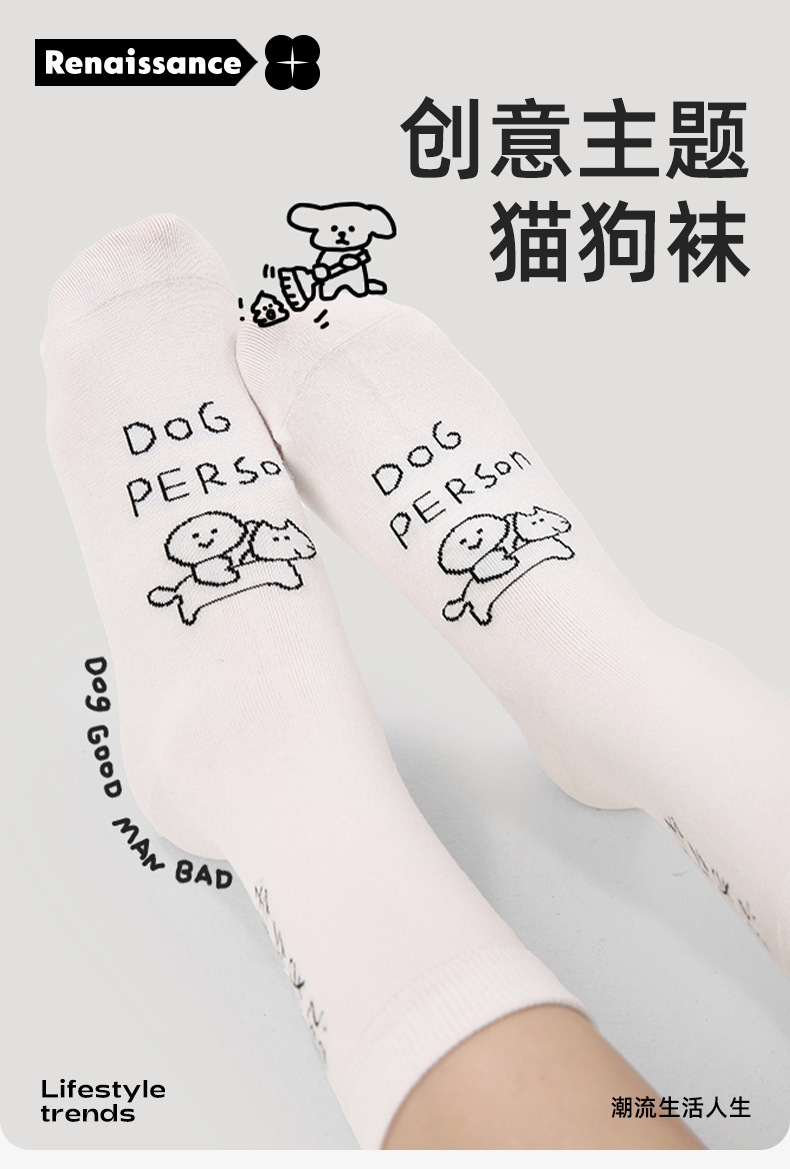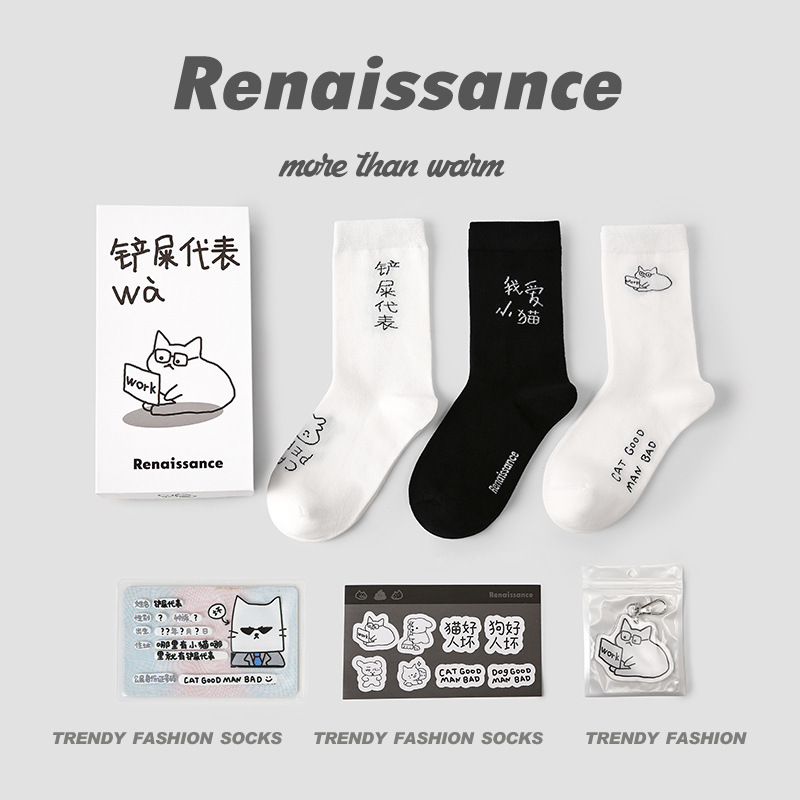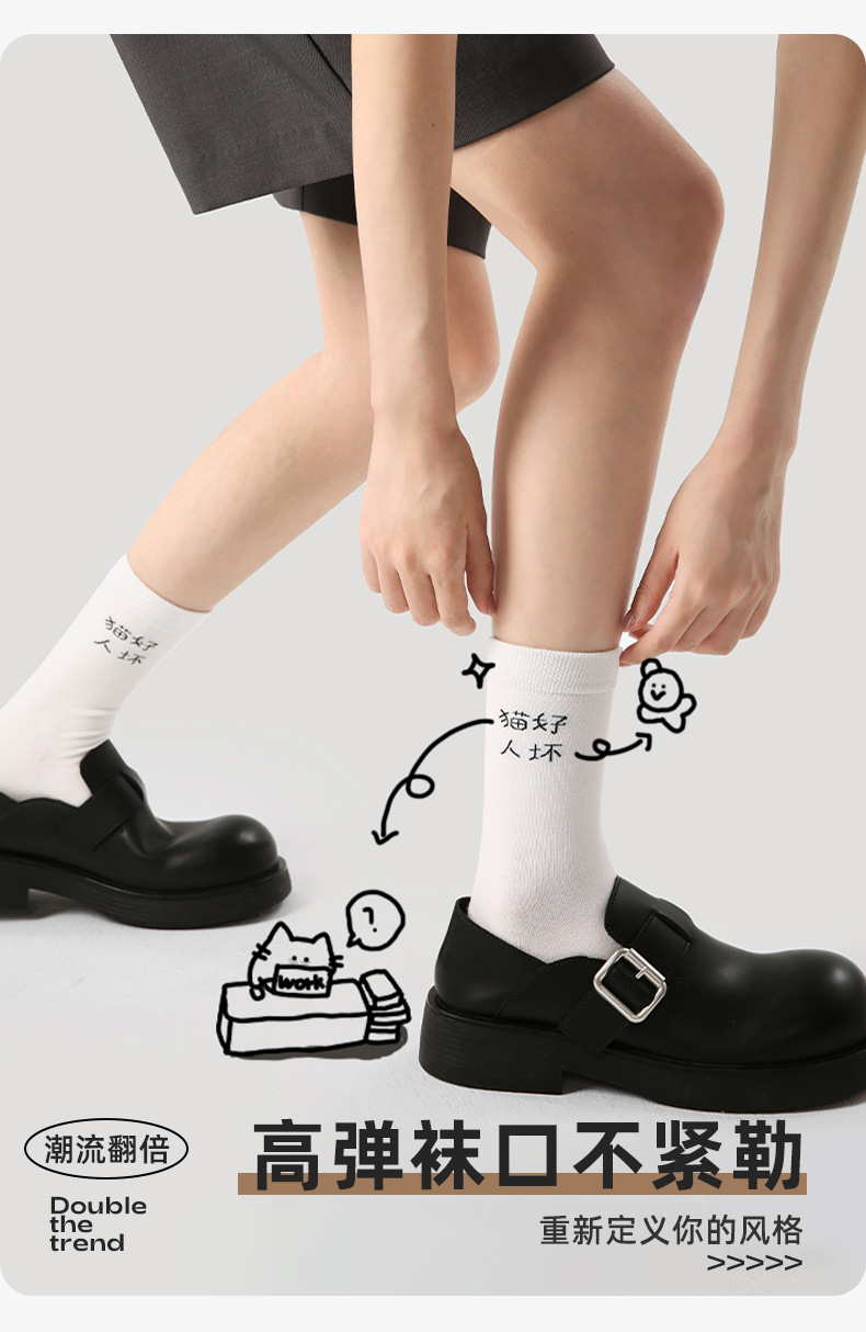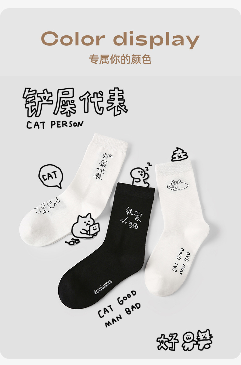 르네상스 양말 여성의 여름 중간 길이 양말 Ins 유행 양말 귀여운 일본 스타일 만화 디자인 봄과 가을 스타킹스토어 가기