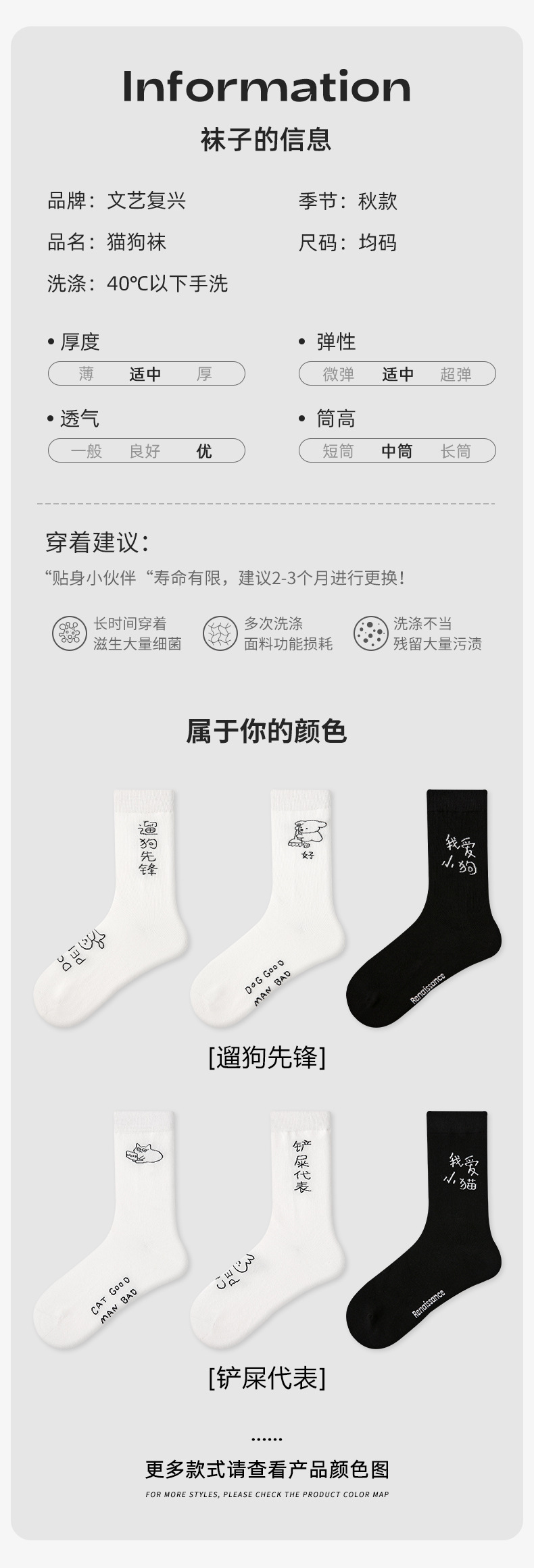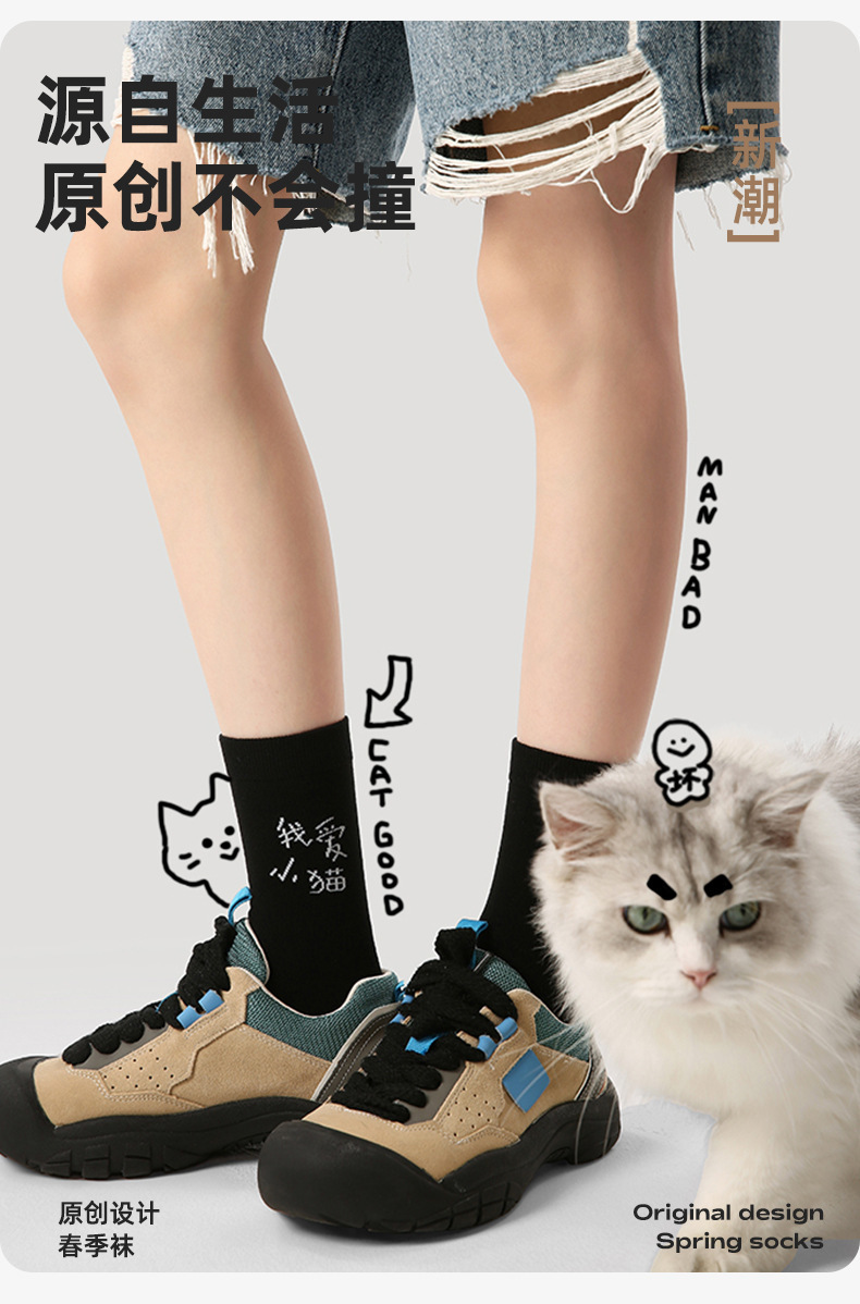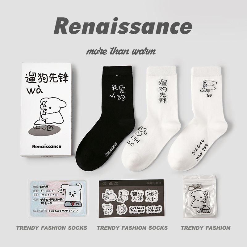 르네상스 양말 여성의 여름 중간 길이 양말 Ins 유행 양말 귀여운 일본 스타일 만화 디자인 봄과 가을 스타킹스토어 가기