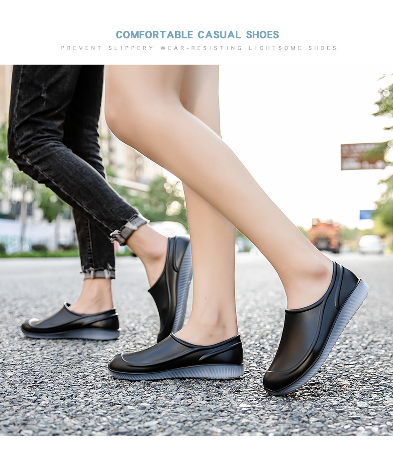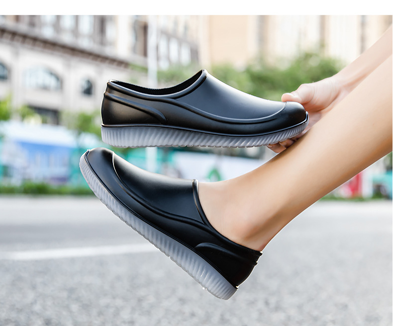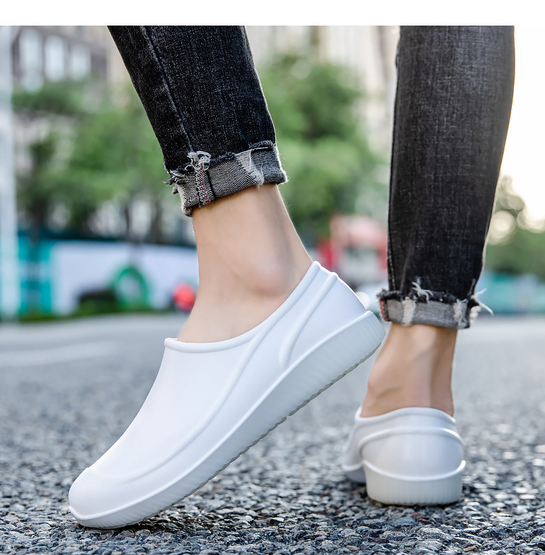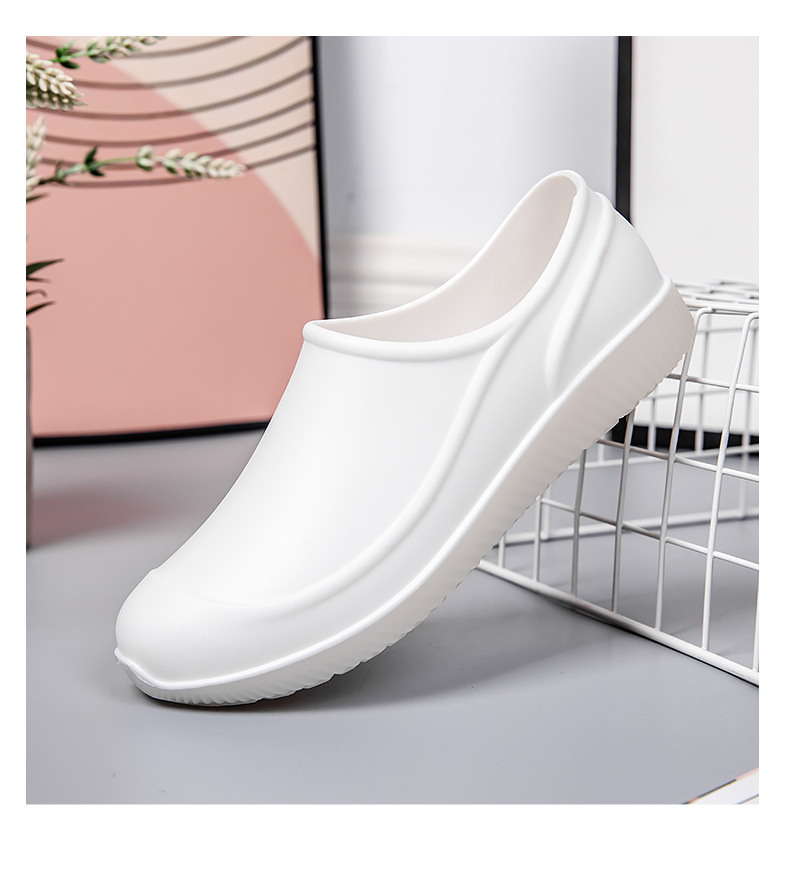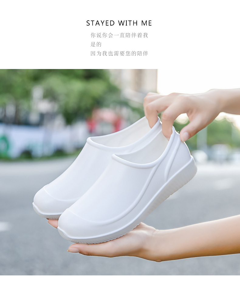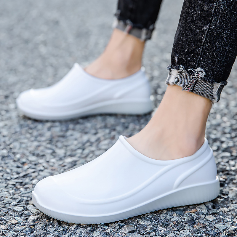 여성용 방수화, 미끄럼 방지 작업화, 부드러운 밑창 작업용 고무신, 흰색 주방 방수 얕은 입구 로우컷 레인부츠스토어 가기