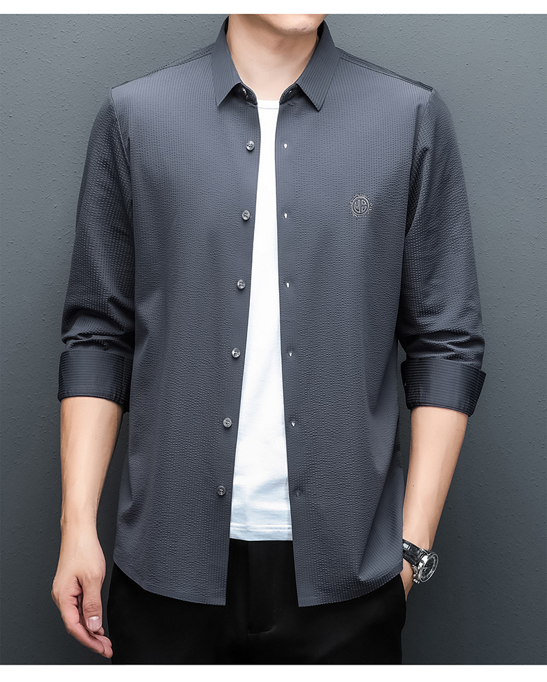 남자 청소년 다크 스트라이프 긴팔 셔츠 남자의 유행 핫 드릴링 탑 2024 봄과 가을 간단한 비즈니스 캐주얼 셔츠