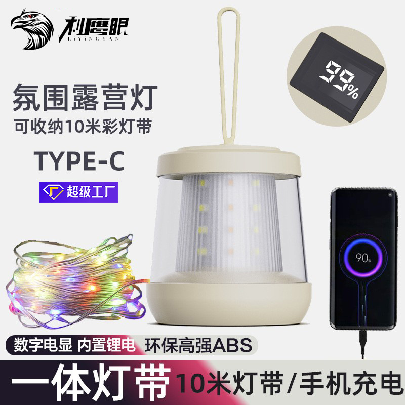 캠핑 다채로운 문자열 램프 야외 램프 조명 슈퍼 긴 내구성 충전 캠핑 램프 분위기 램프 야외 텐트 램프