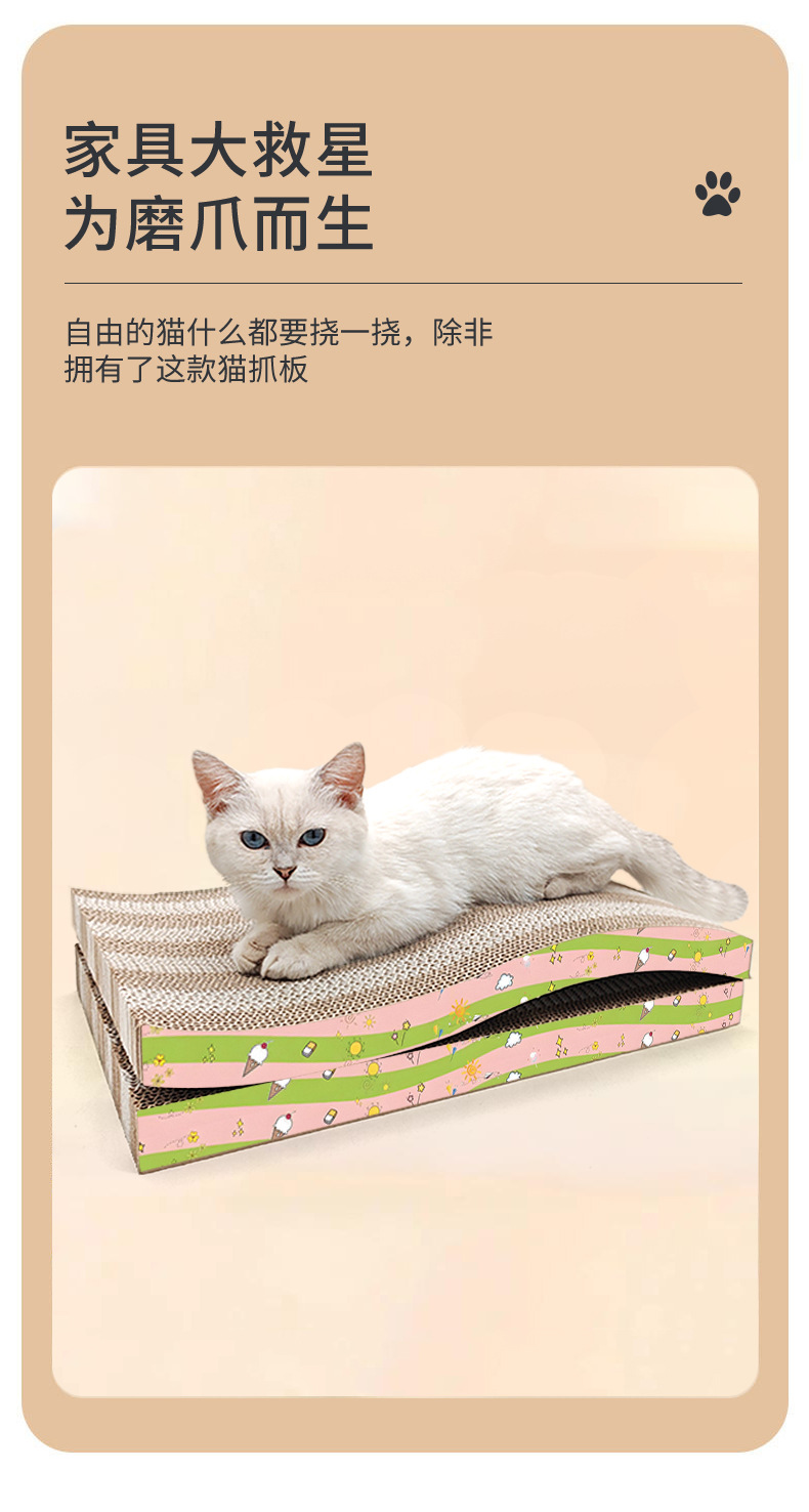 웨이브 모양의 새로운 골판지 고양이 스크래치 보드 내마모성 부스러기 고양이 연삭 발톱 셀프 구호 애완 동물 장난감
