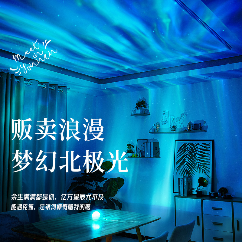 북극광 물 리플 램프 인터넷 유명 침실 창조적 인 불꽃 제스처 로맨틱 프로젝션 별이 빛나는 하늘 선물 분위기 램프스토어 가기