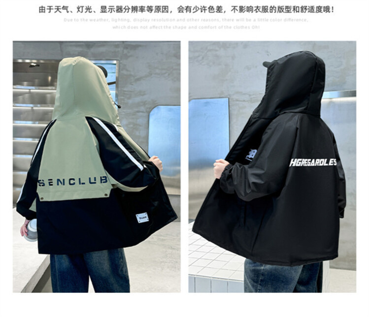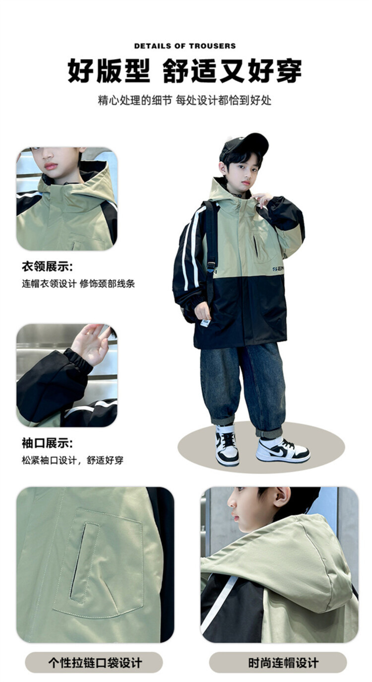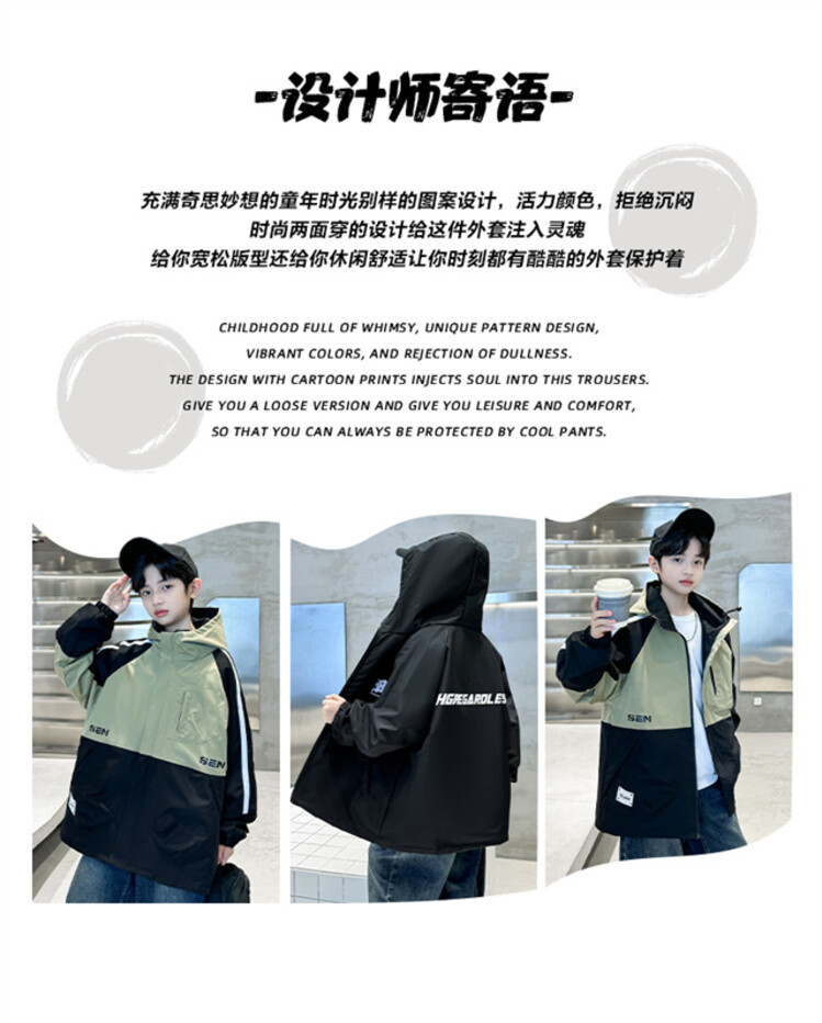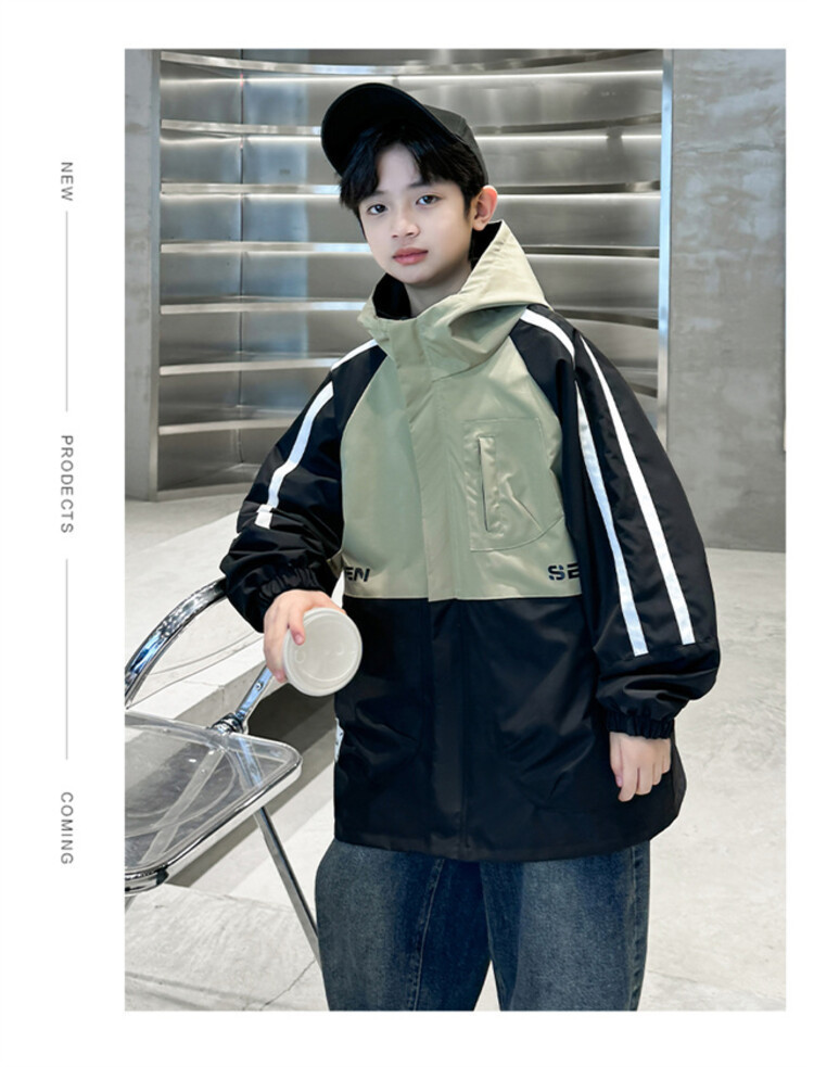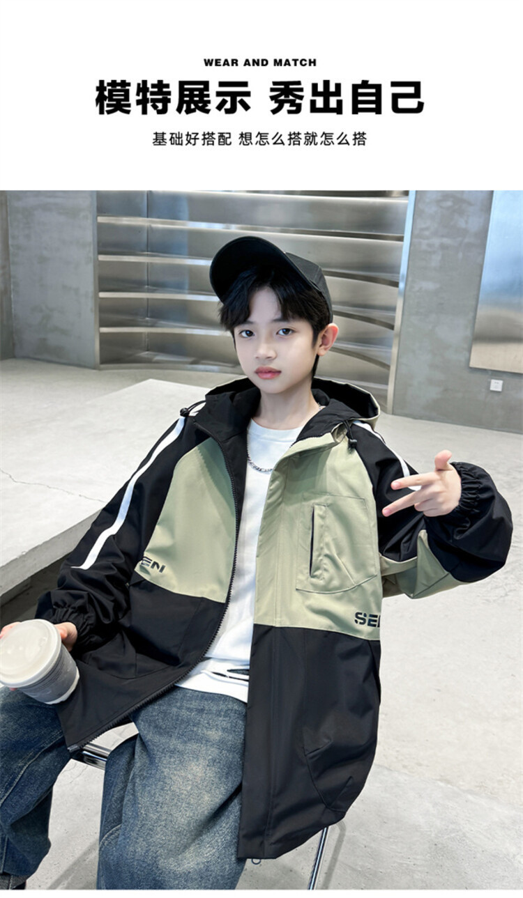 소년 봄과 가을 컬러 매칭 트렌치 코트 2024 봄 새로운 어린이 한국 외국 스타일 양면 후드 코트 도매스토어 가기