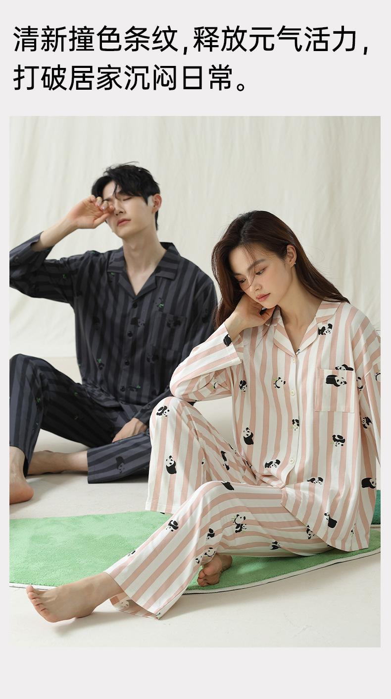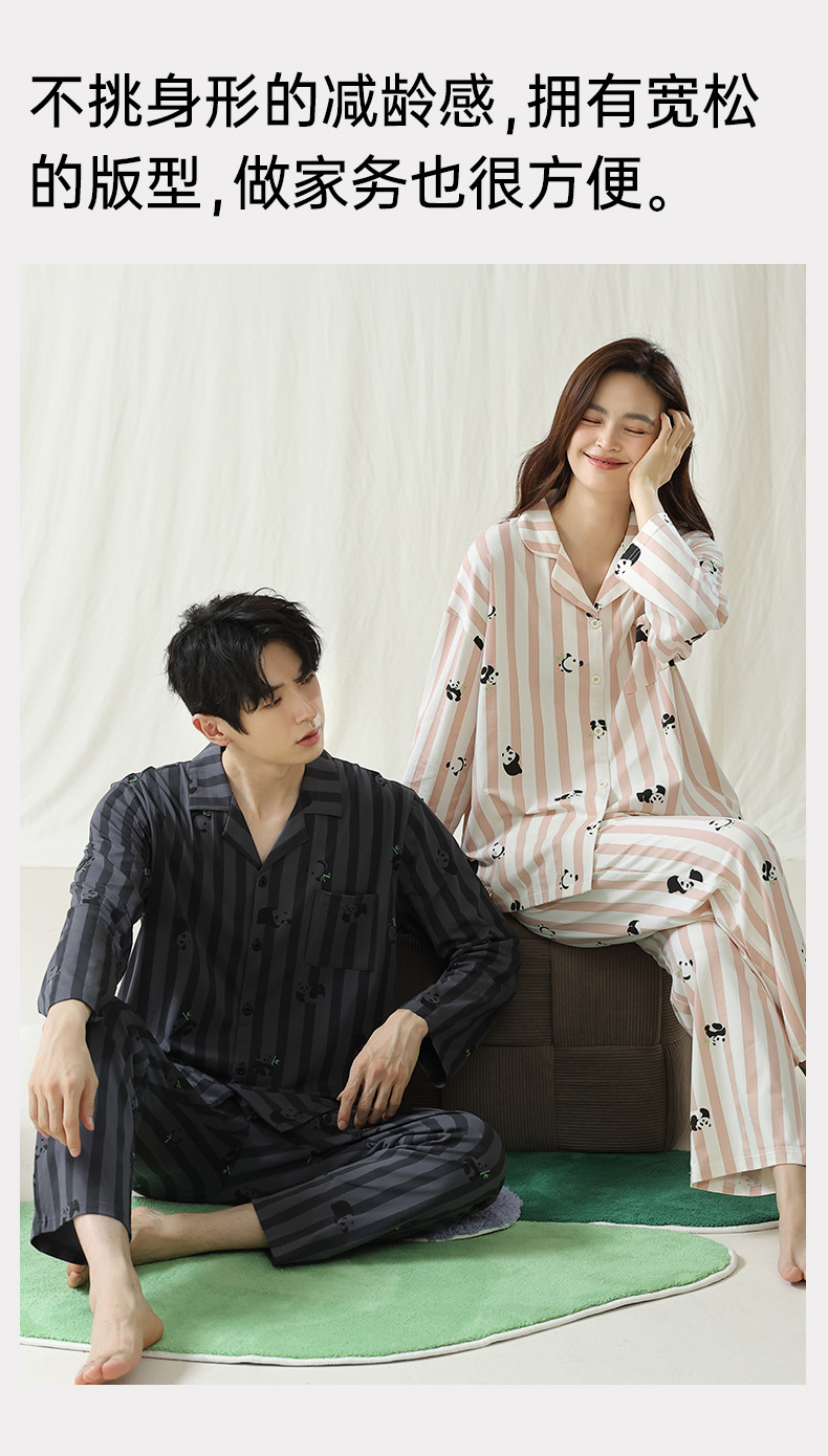 [항균성 신장면] 가을과 겨울 긴 소매 면 커플 잠옷 여성 가을 판다 남자 잠옷 홈 옷스토어 가기