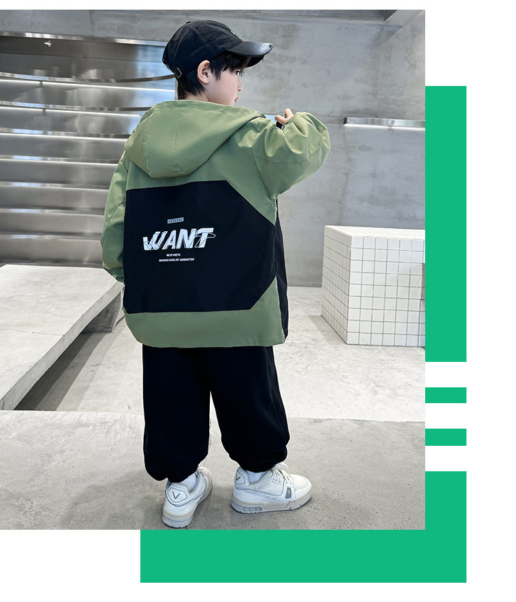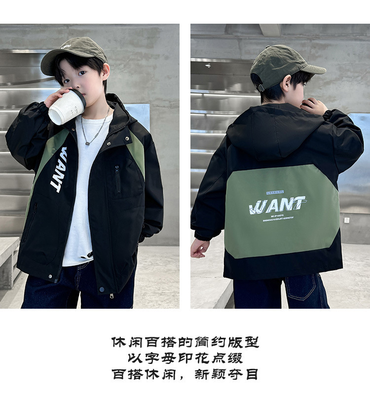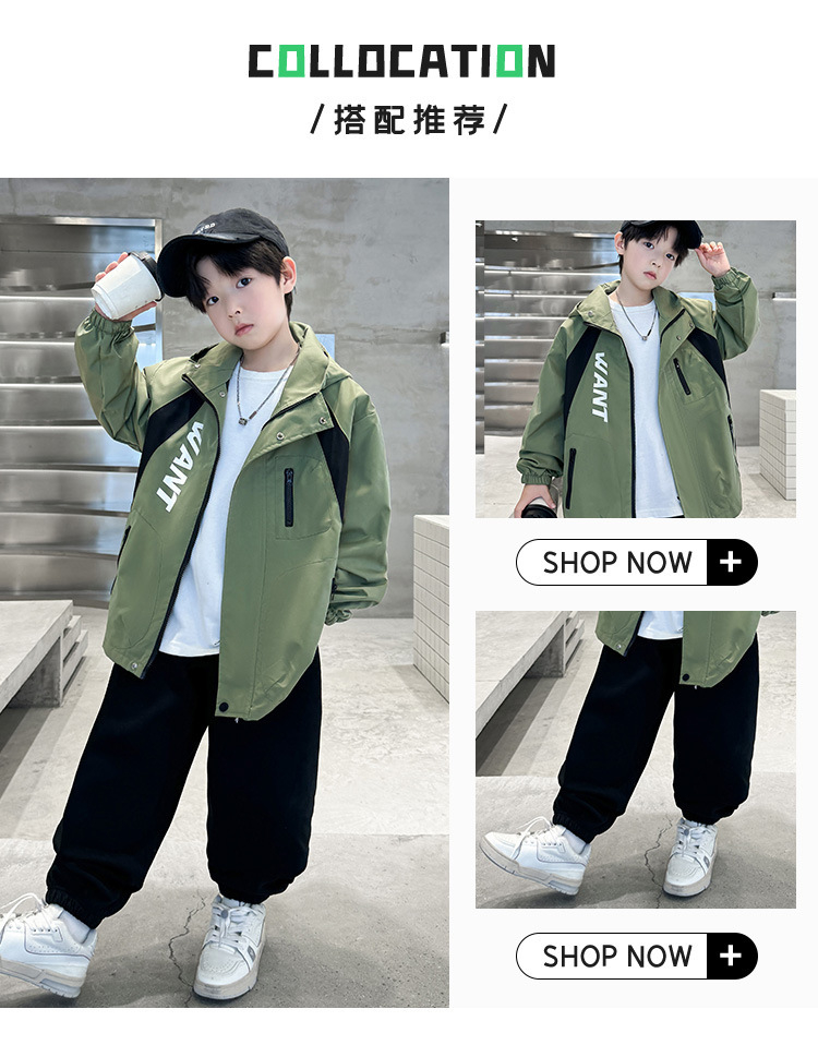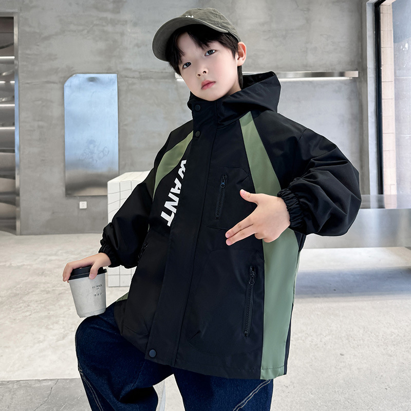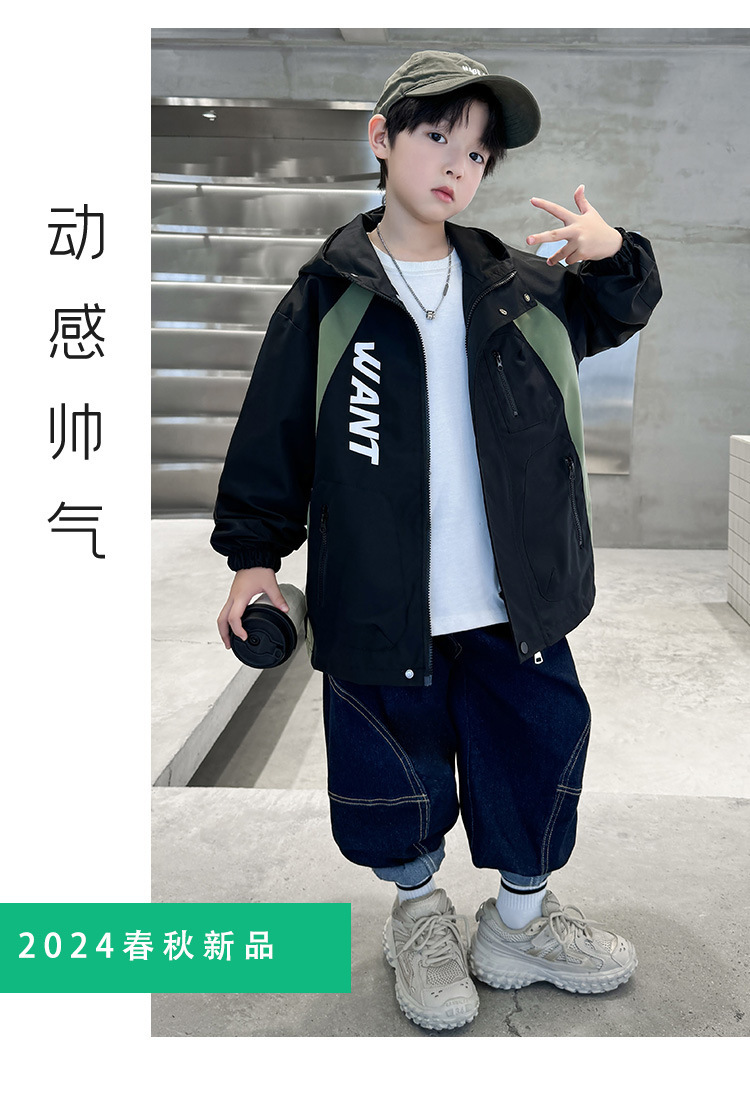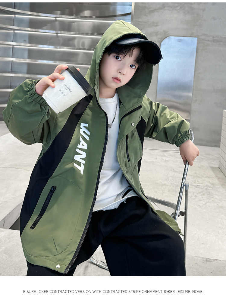 소년 코트 2024 년 봄과 가을 새로운 서양식 어린이 가을 코트 재킷 스포츠 자켓 후드스토어 가기