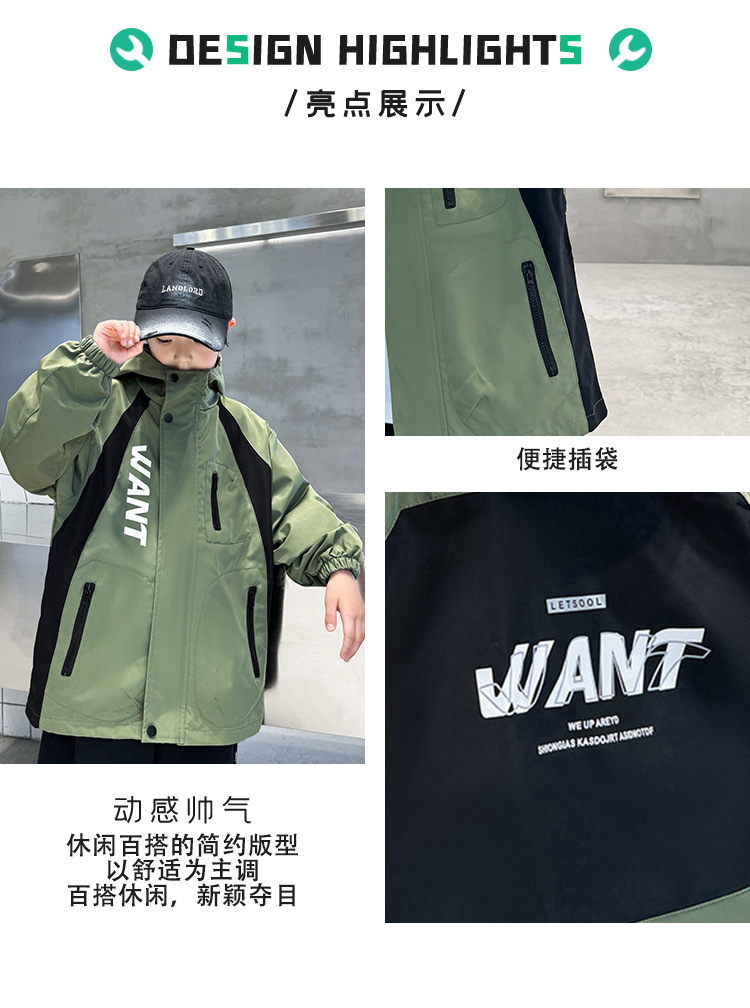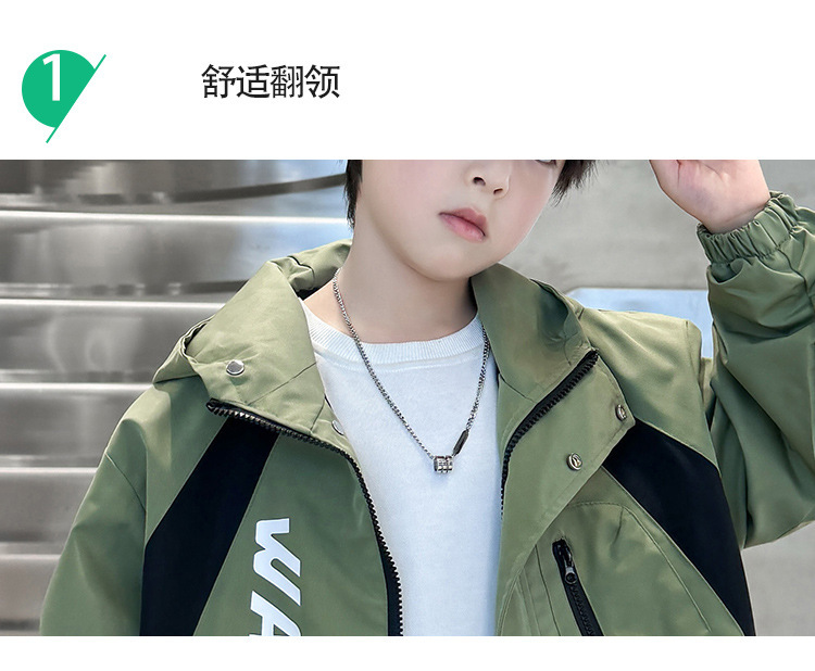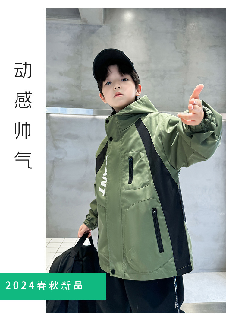 男童外套春秋款2024新款洋气中大儿童秋装风衣夹克冲锋衣连帽上衣