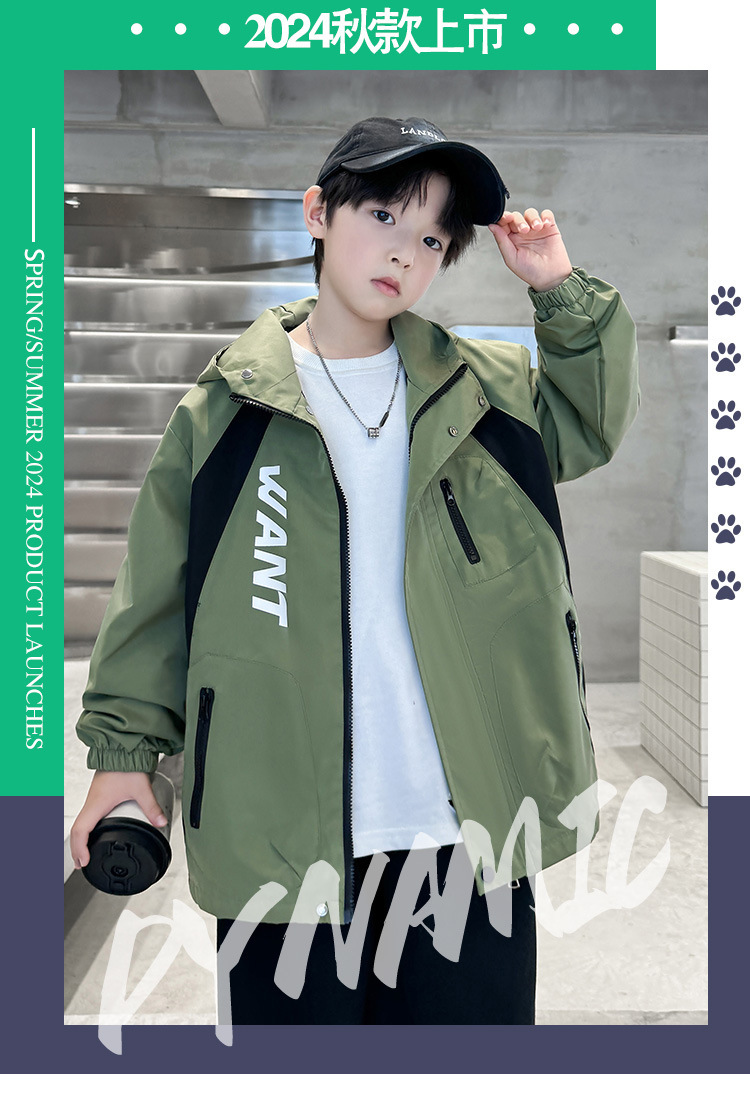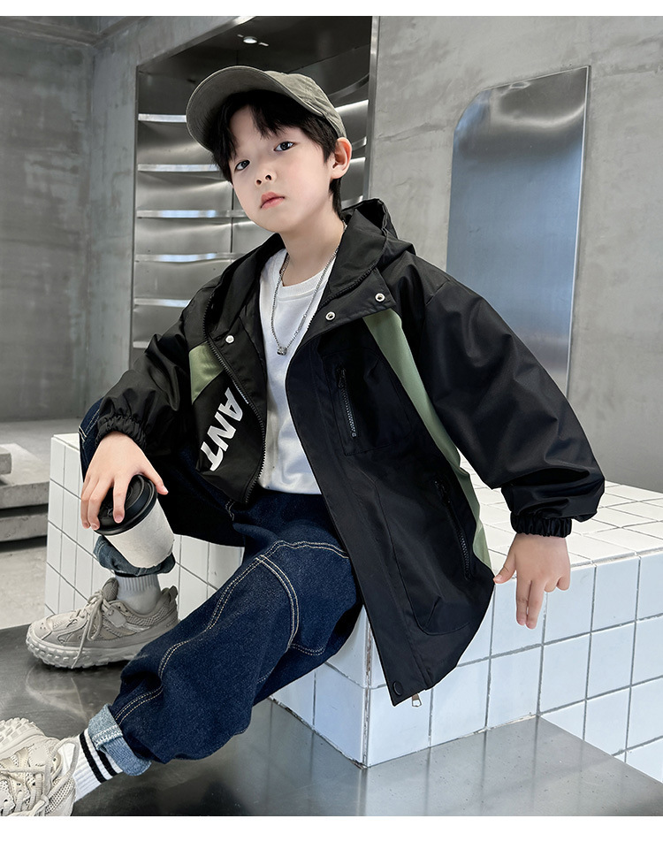 소년 코트 2024 년 봄과 가을 새로운 서양식 어린이 가을 코트 재킷 스포츠 자켓 후드