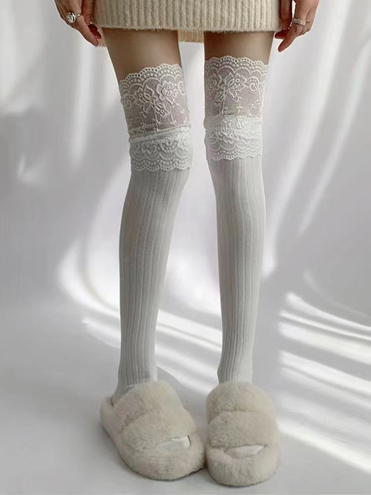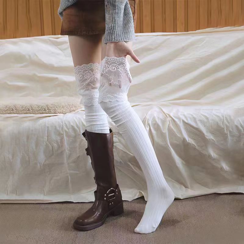 레이스 스타킹 어린이 봄과 가을 일본 스타일 JK 소녀의 스타킹 블랙 앤 화이트 레이스 부츠 로리타 오버 더 무릎 양말스토어 가기