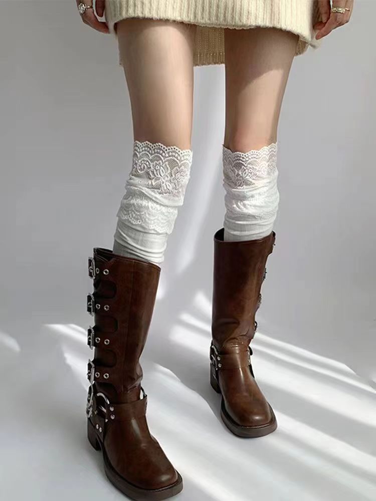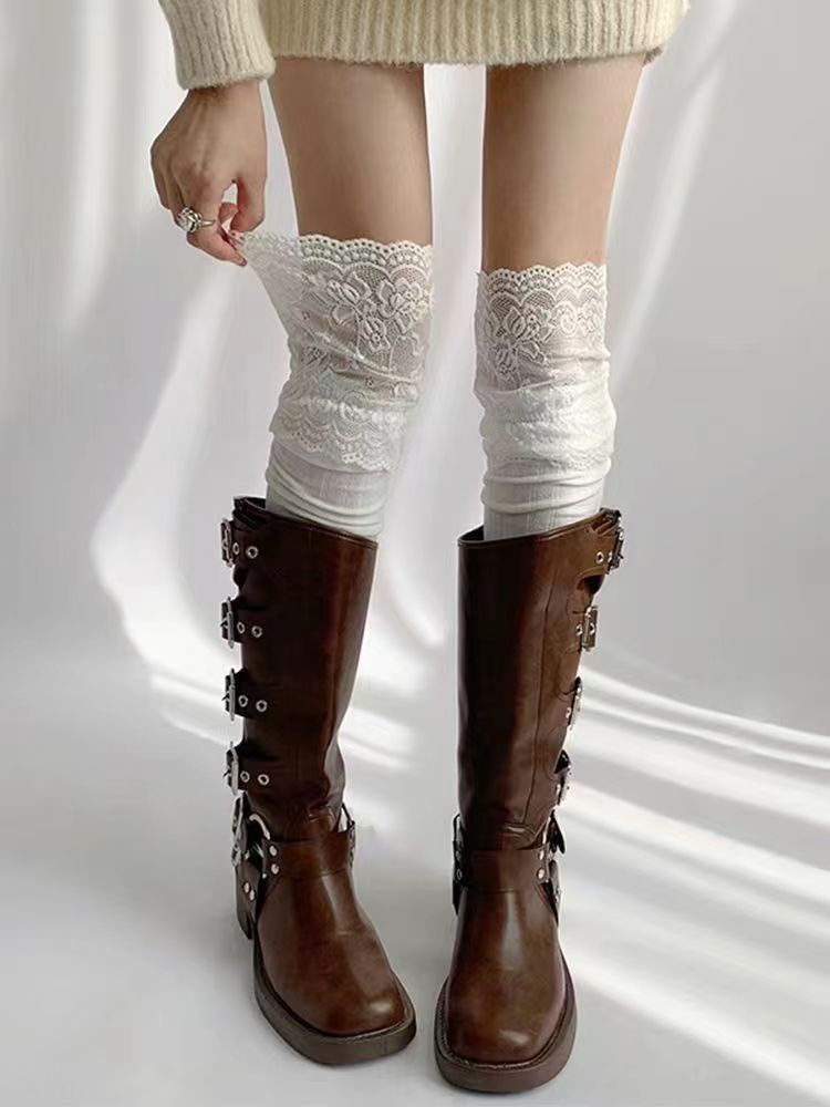 레이스 스타킹 어린이 봄과 가을 일본 스타일 JK 소녀의 스타킹 블랙 앤 화이트 레이스 부츠 로리타 오버 더 무릎 양말