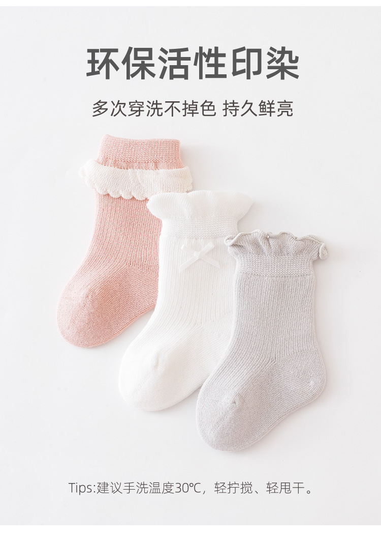 Zhuji 어린이 양말 봄과 가을 얇은 아기 양말 한국 공주 스타일 소녀 중간 배럴 클래스 A 면 아기 스타킹