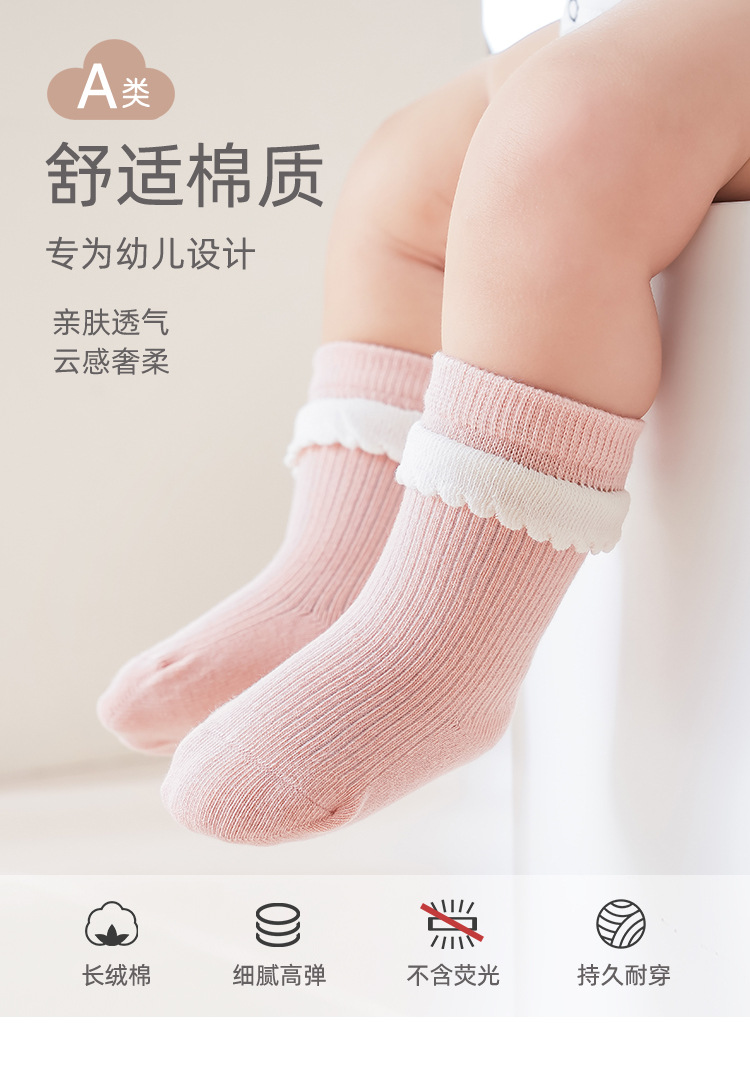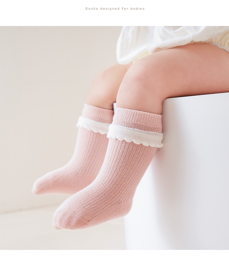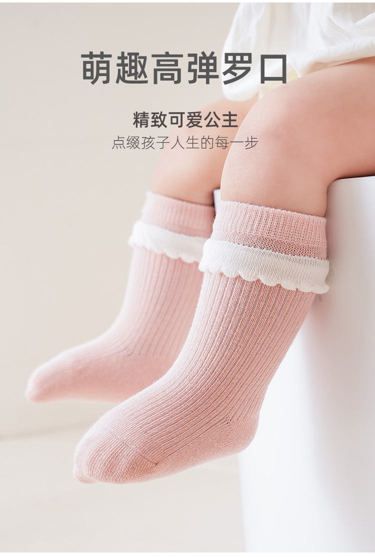 Zhuji 어린이 양말 봄과 가을 얇은 아기 양말 한국 공주 스타일 소녀 중간 배럴 클래스 A 면 아기 스타킹스토어 가기