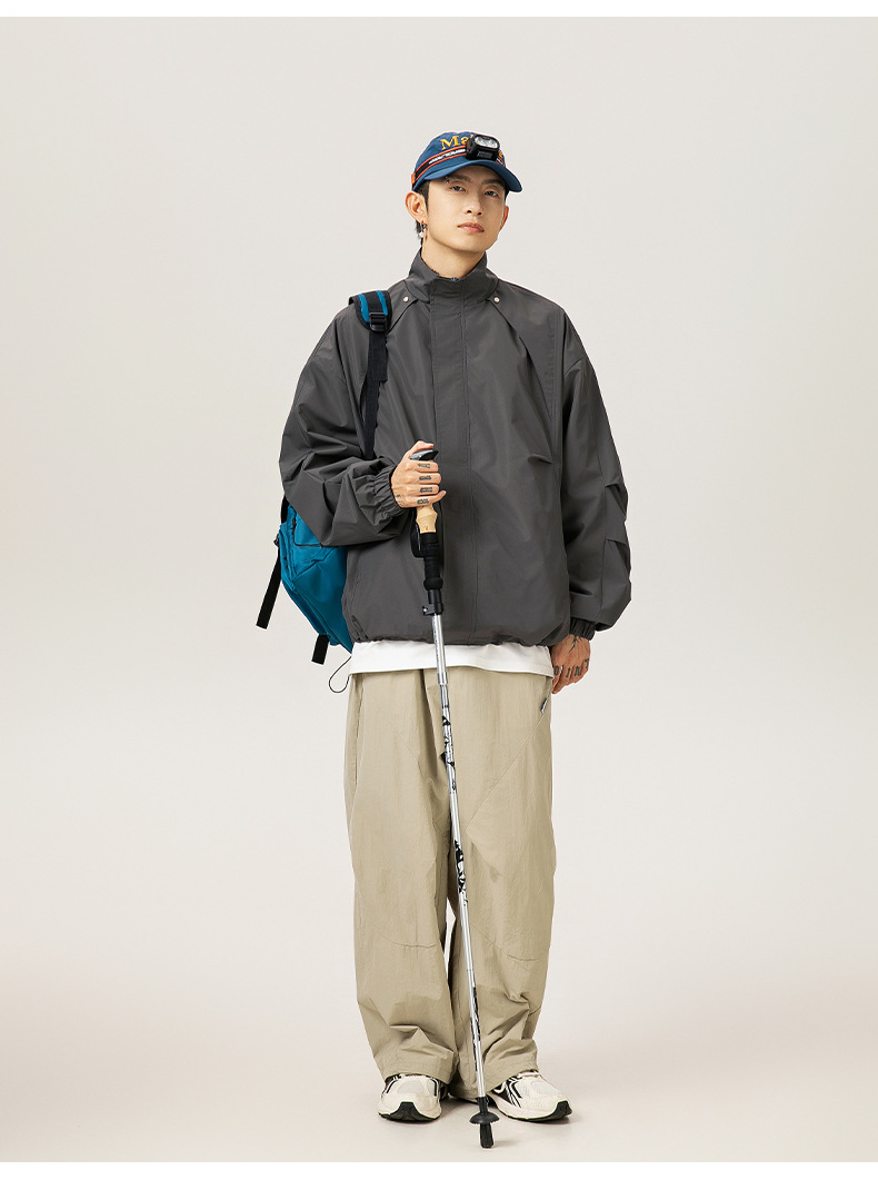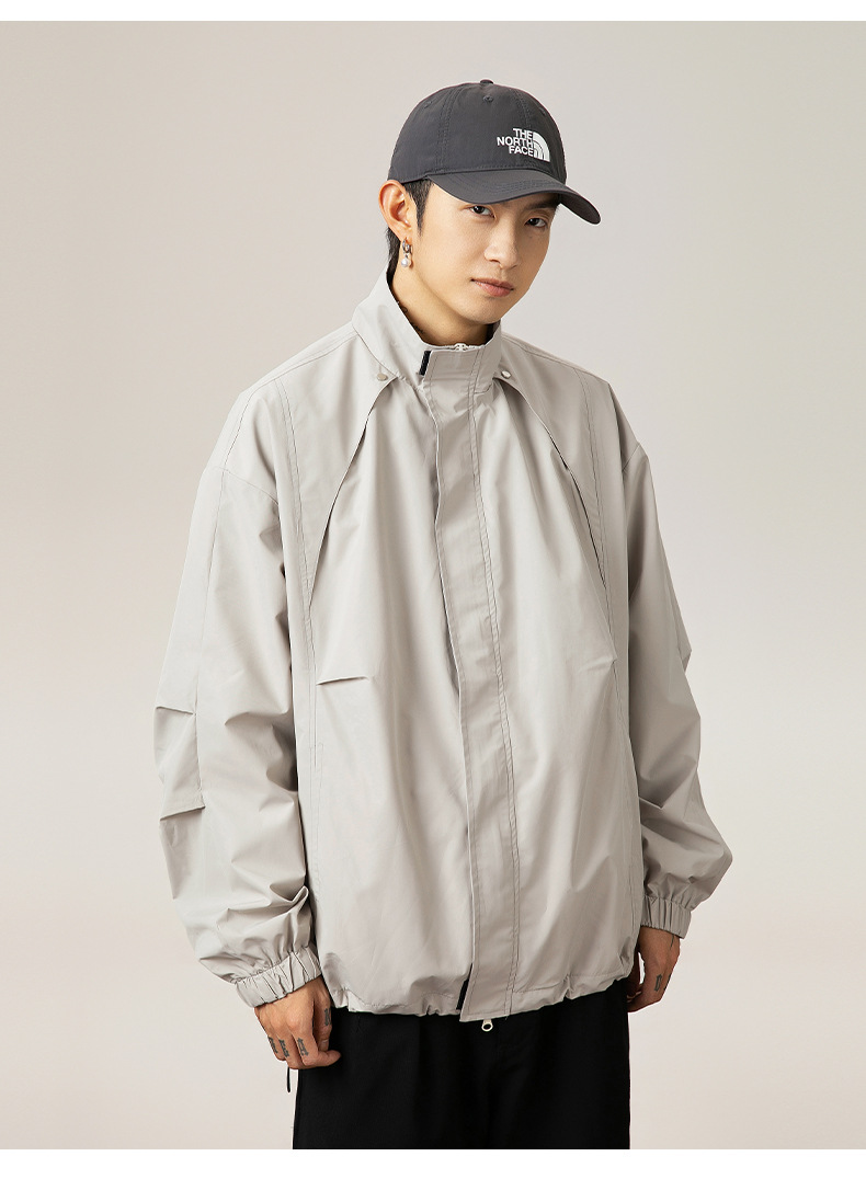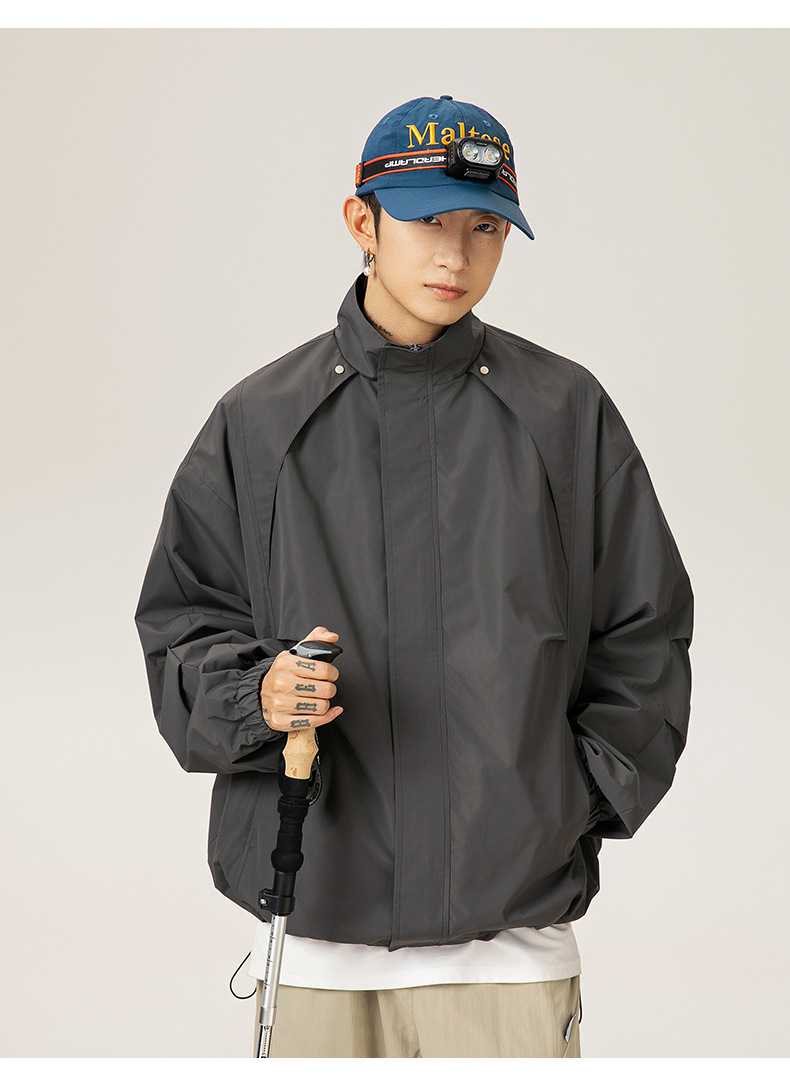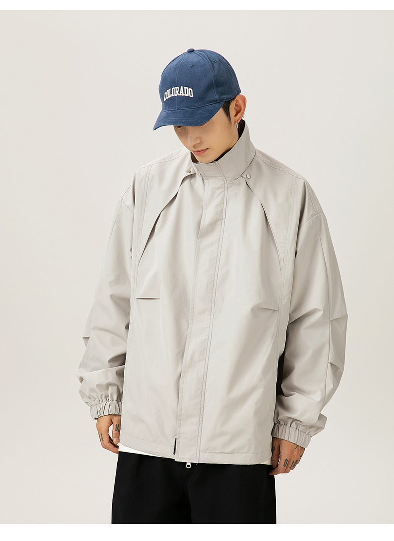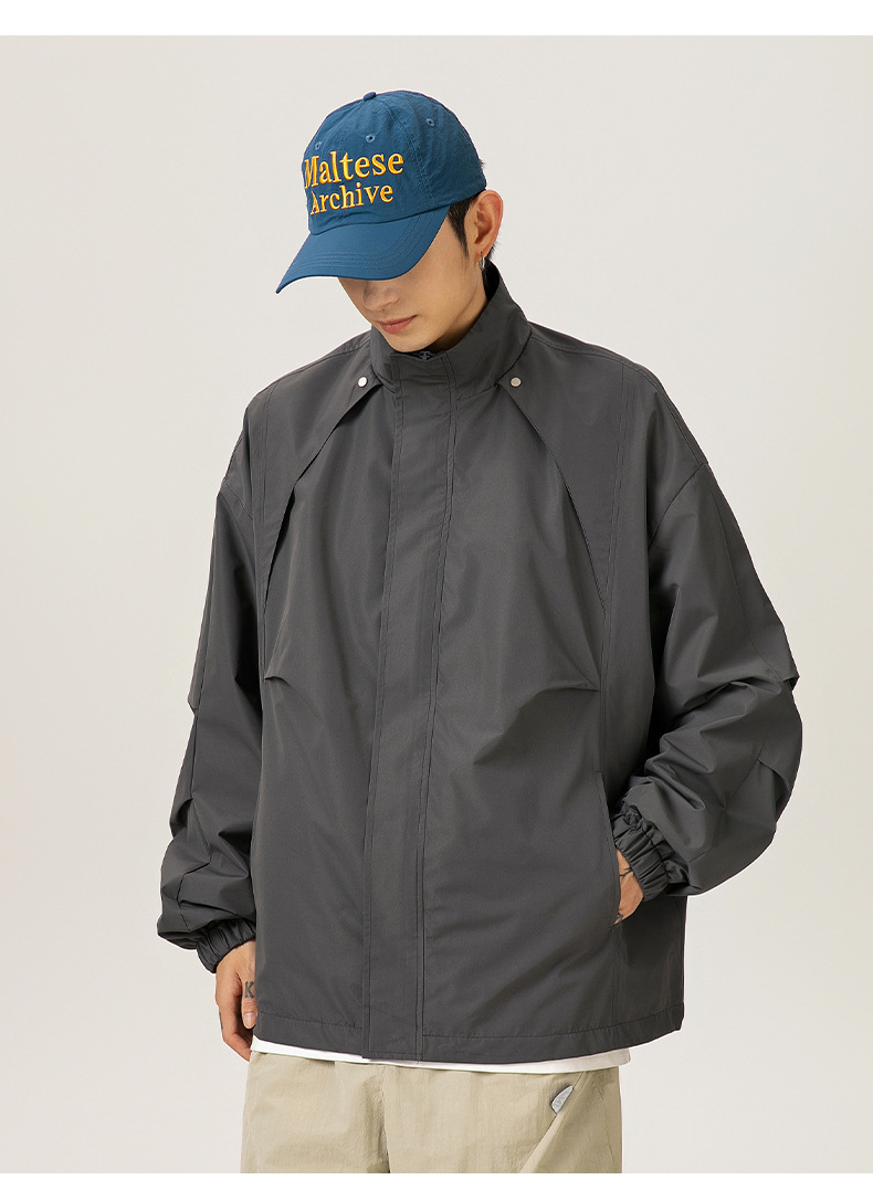 방수 스탠드 칼라 루즈핏 디자인 워크웨어 재킷 봄용 레이어드 플리츠 아웃도어 재킷 트렌디 브랜드 코트스토어 가기