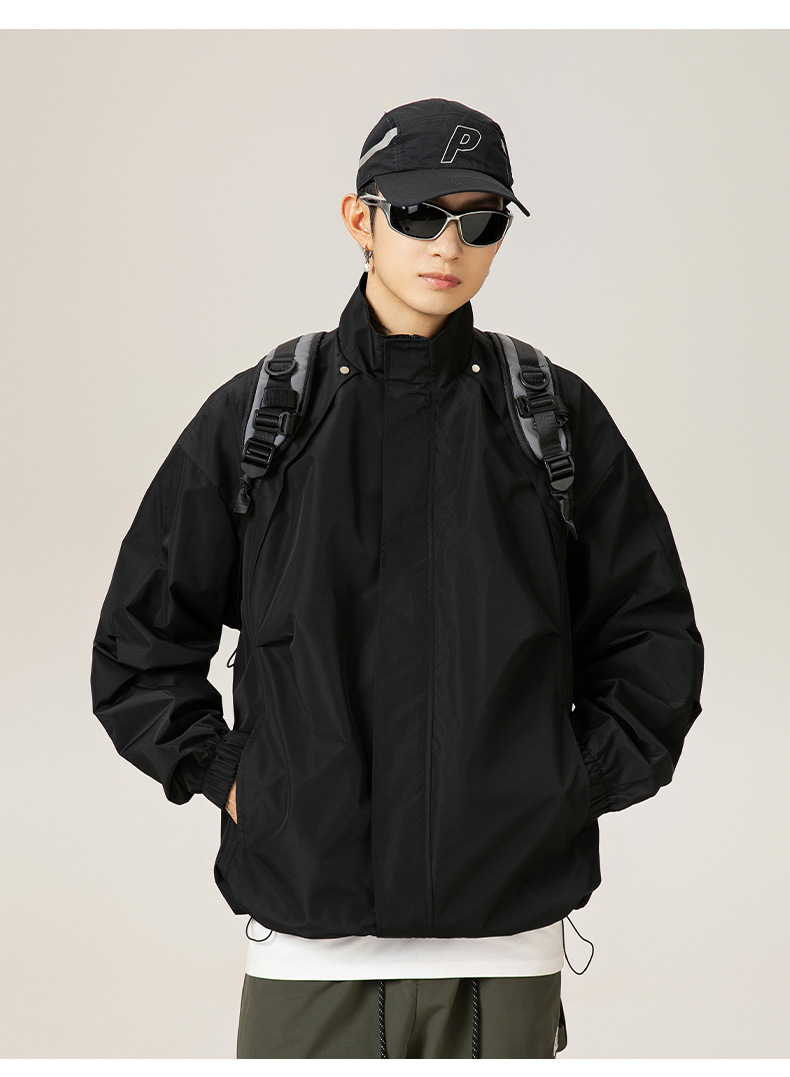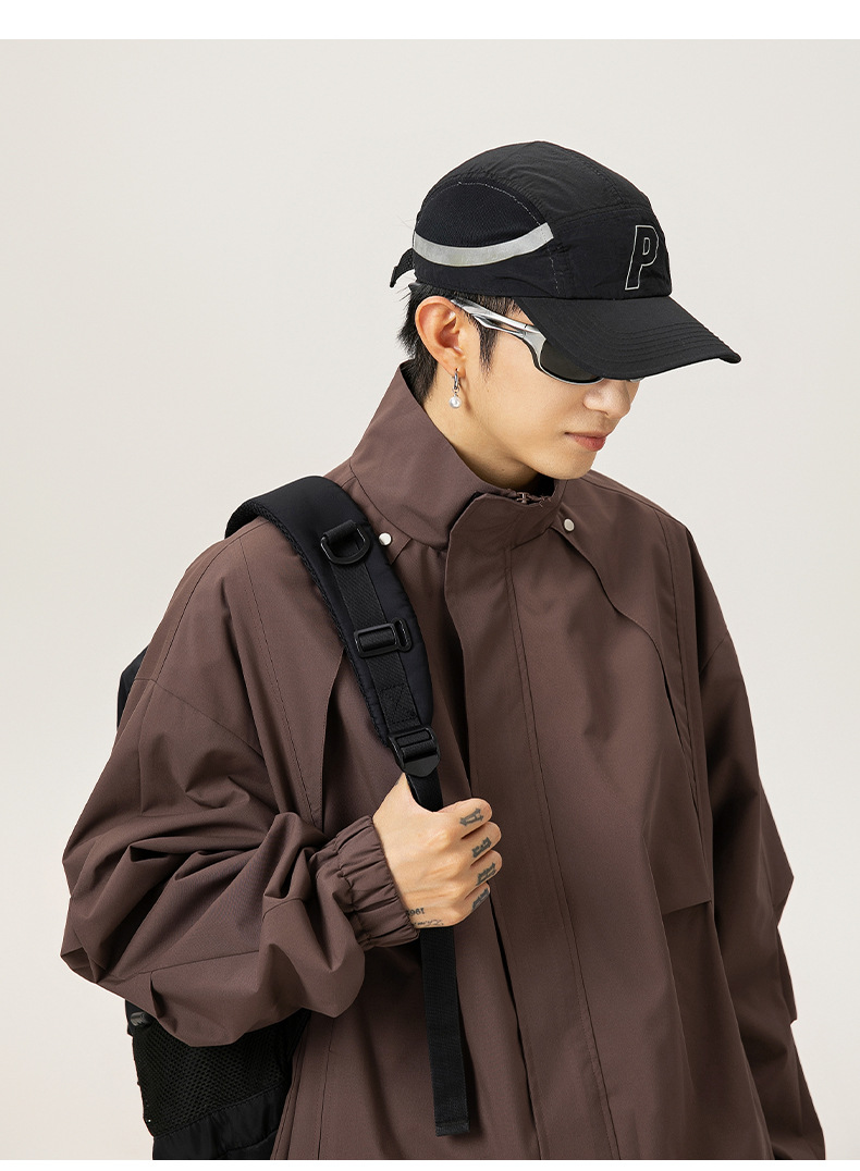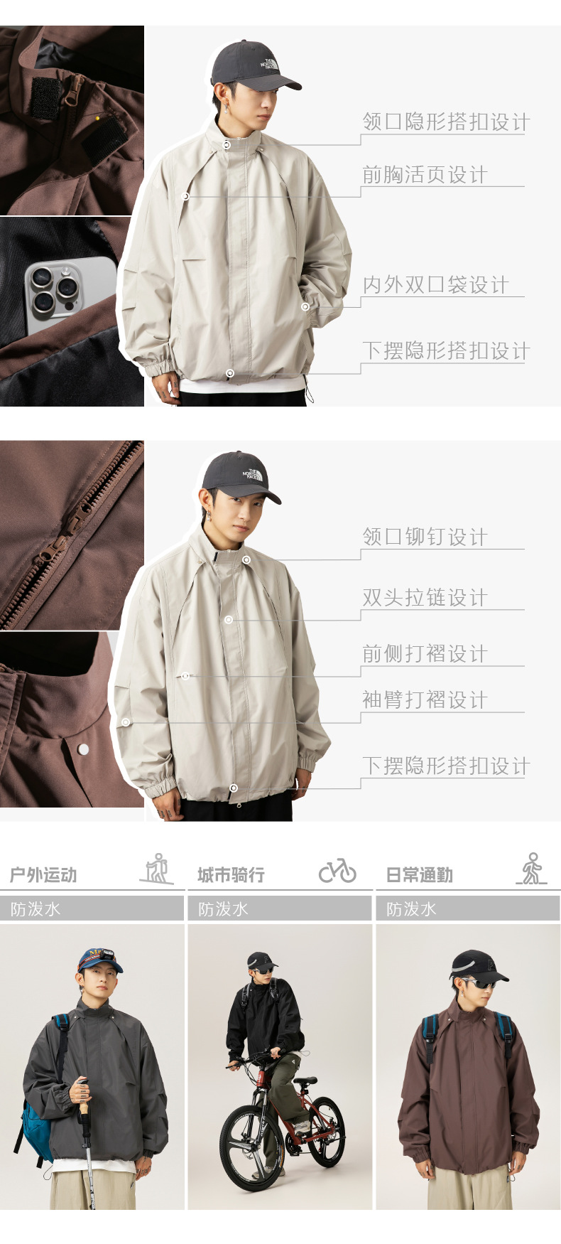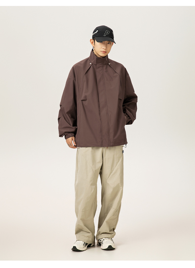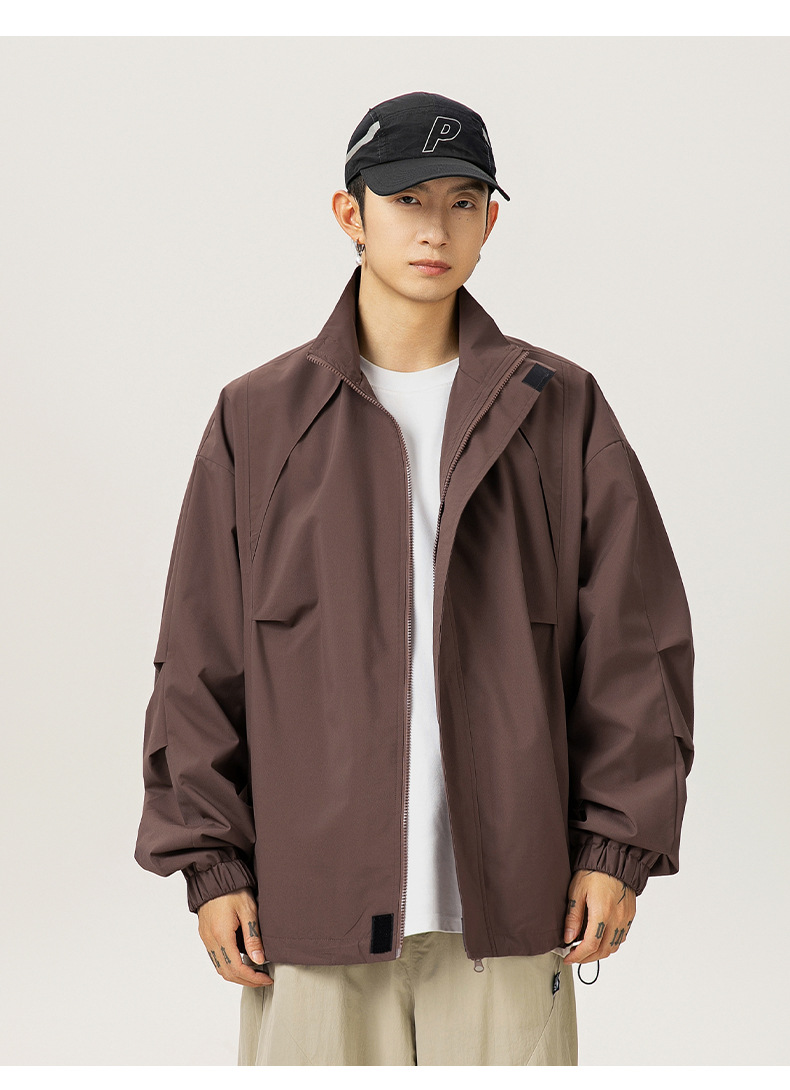 방수 스탠드 칼라 루즈핏 디자인 워크웨어 재킷 봄용 레이어드 플리츠 아웃도어 재킷 트렌디 브랜드 코트스토어 가기